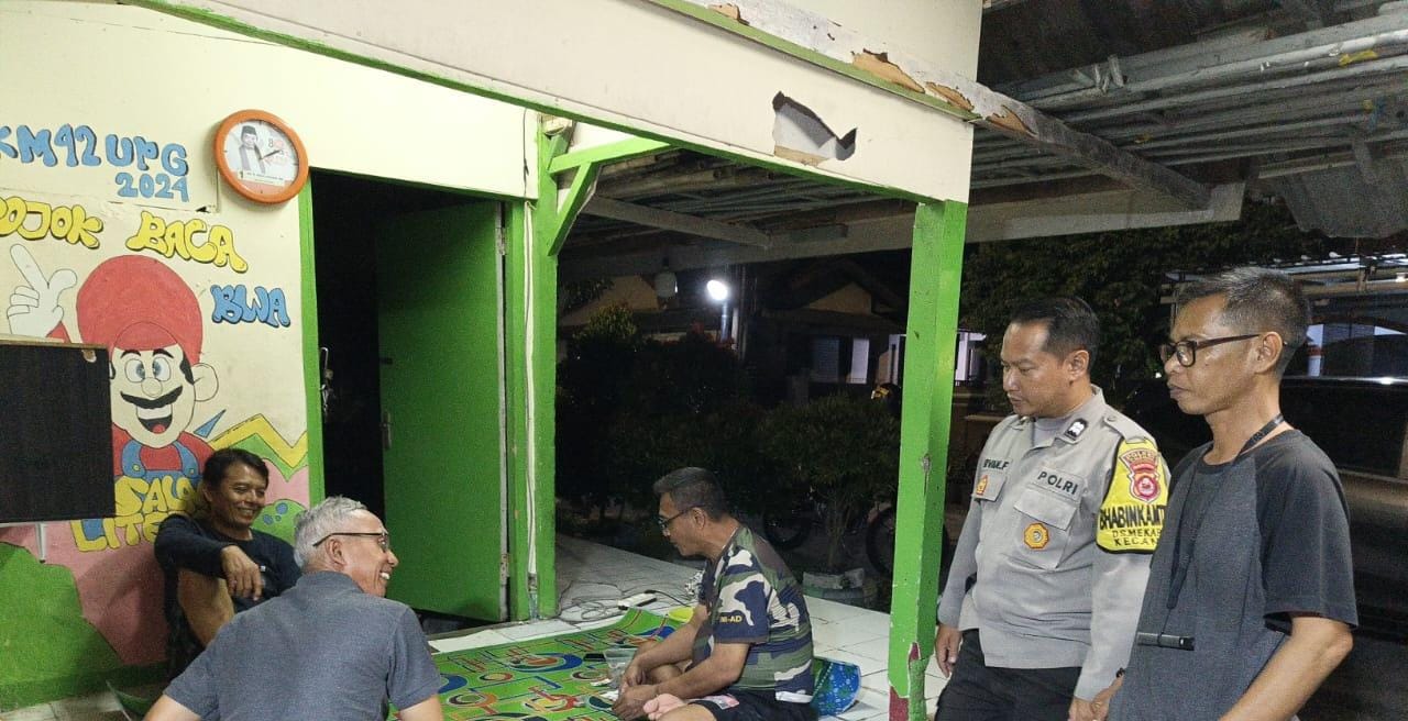 Cilegon - Personel Bhabinkamtibmas Polsek Anyar Polres Cilegon Polda Banten Aiptu Irvan melaksanakan sambang Ronda Siskamling Dalam rangka menjaga Harkamtibmas dan Sebagai bentuk mendukung Program Quick Wins Presisi Polri, Selasa (04/10).