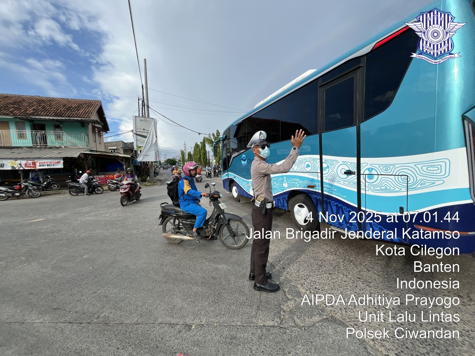 Cilegon – Berikan Pelayanan Pagi Kepada Masyarakat Personil Polsek Ciwandan Polres Cilegon Polda Banten melaksanakan pengaturan di titik kepadatan Arus Lalu-lintas Yang Ada Di daerah Hukum Polsek Ciwandan, Selasa (04/11/2025).