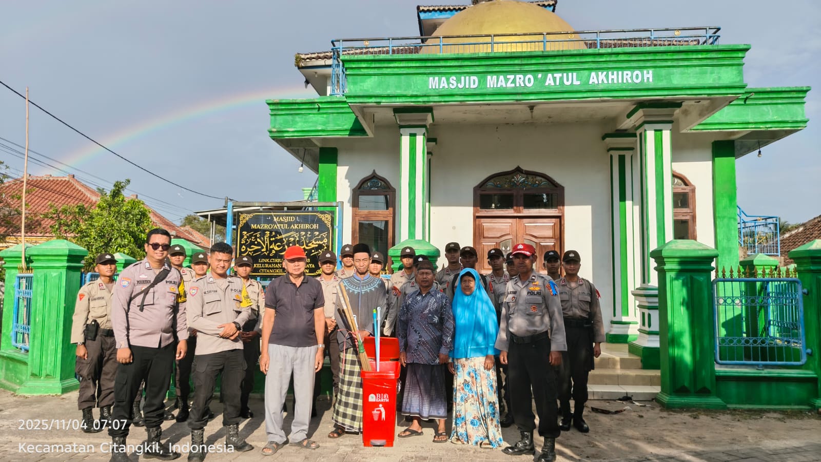 Cilegon - Bhabinkamtibmas Polsek Ciwandan Polres Cilegon Polda Banten melaksanakan kegiatan Bakti Religi dengan membersihkan Masjid Mazro Atul Akhiroh Rt 03/03 Kelurahan Samangraya Kecamatan Citangkil Kota Cilegon, Selasa (04/11/2025).
