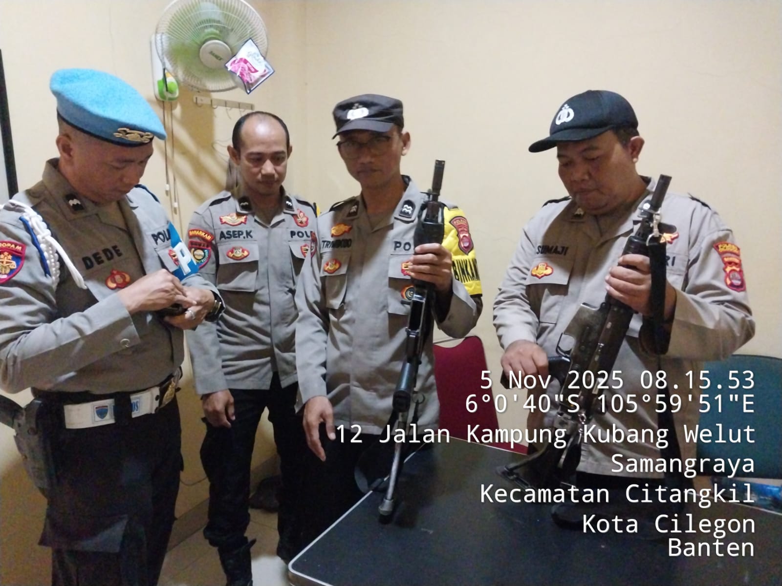 Kapolres Cilegon Polda Banten AKBP Dr. Martua Raja Taripar Laut Silitonga Melalui Kapolsek Ciwandan Polres Cilegon Polda Banten KOMPOL Andi Suherman Menekankan dan menegaskan dalam serah terima tugas jaga Mako dan pelayanan KA-SPKT wajib mengecek barang Inventaris mulai dari Senpi Dinas, Mobil Patroli, serta barang Inventaris lainya termasuk Mako apabila ada hal yang tidak sesuai wajib di cek secara seksama sehingga sewaktu serah terima tidak ada yang terabaikan dan dapat dipertanggung jawabkan, ungkapnya.