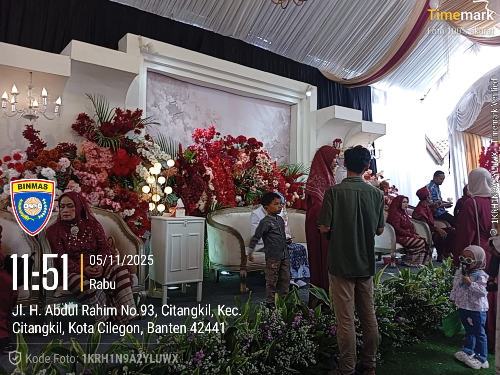 Cilegon - Bhabinkamtibmas Polsek Ciwandan Polres Cilegon Polda Banten melaksanakan Kegiatan Kondangan/Undangan ini bertujuan untuk memastikan acara berlangsung dengan aman dan tertib, serta memberikan rasa aman kepada warga yang menghadiri resepsi pernikahan tersebut, Rabu (05/11/2025).