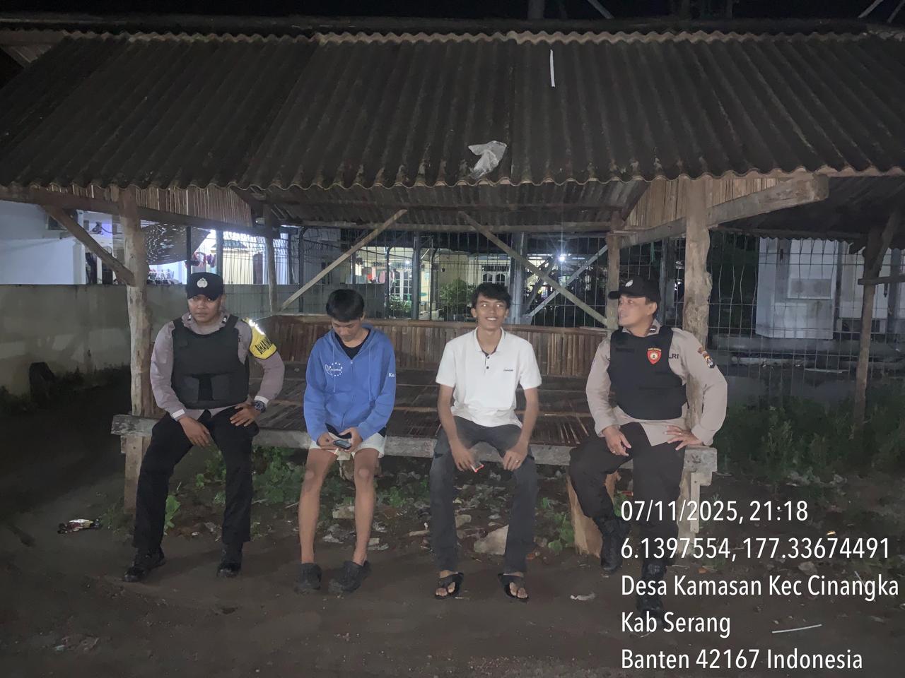 *Polres Cilegon* || Personel Bhabinkamtibmas Polsek Cinangka melaksanakan Program Komandan Wish Kapolda Banten RONDA SATKAMLING menyampaikan komunikasi dengan Petugas Siskamling agar berperan aktif dalam menciptakan Harkamtibmas yang aman dan Kondusif, Sabtu (08/11/2025).