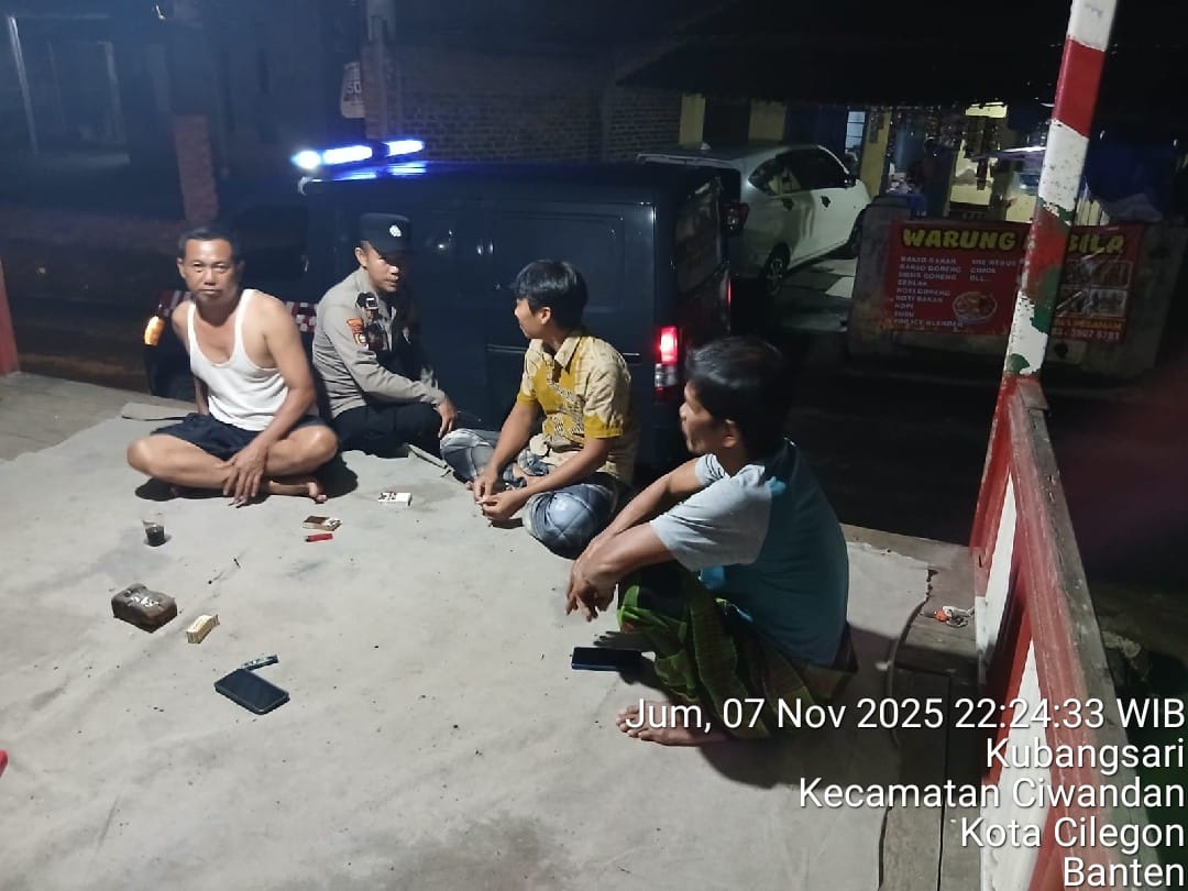 Cilegon - Guna Mencegah Terjadinya Tindak Kejahatan dan Menggiatkan Patroli Pos Ronda Siskamling di Pemukiman warga masyarakat,Personil Polsek Ciwandan Polres Cilegon Polda Banten Mengajak dan memantau pelaksanaan ronda siskamling di lingkungan daerah hukum Polsek Ciwandan, Sabtu (08/11/202).