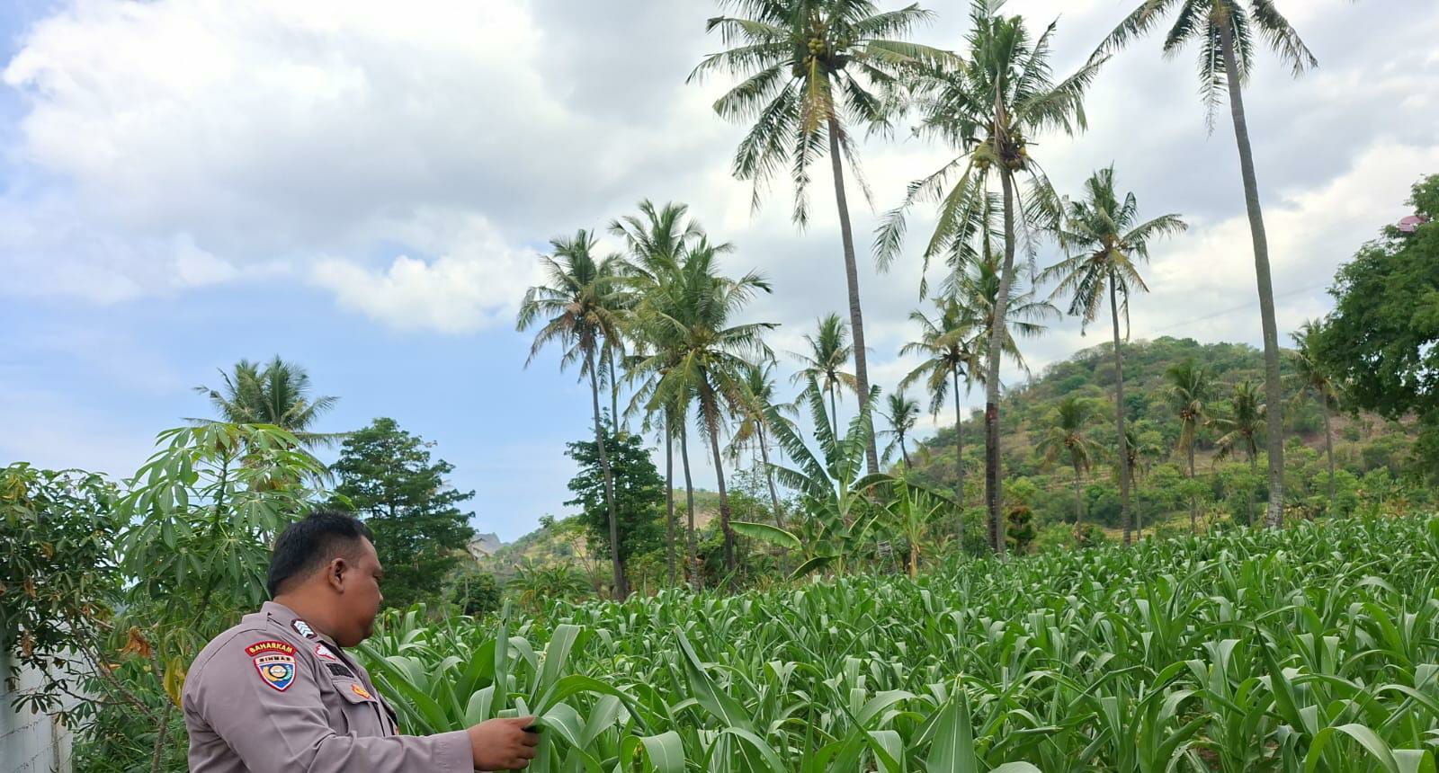 Monitoring Tanaman Jagung, Anggota Bhabinkamtibmas Ds. Margagiri Rutin Dalam Rangka Menjaga Pertumbuhan Jagung Baik Mendukung Program Ketahanan Pangan Pemerintah