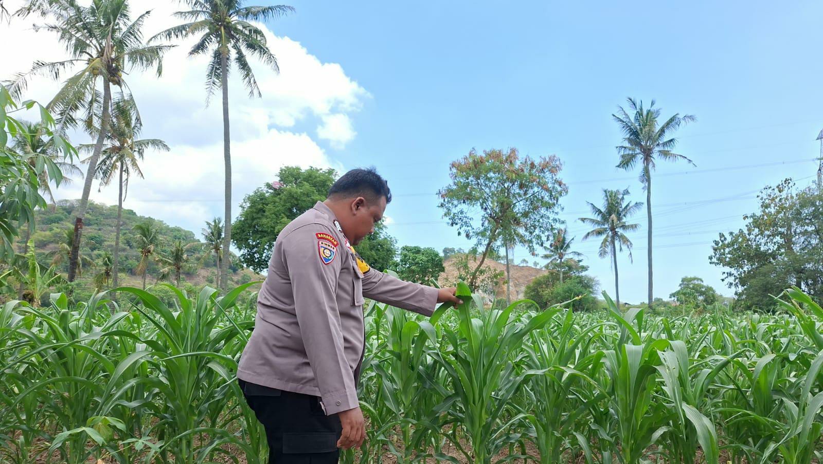 Aktif Kawal Pertumbuhan Jagung, Anggota Bhabinkamtibmas Ds. Margagiri Cek Tanaman Jagung Sebagai Wujud Dukung Ketahanan Pangan