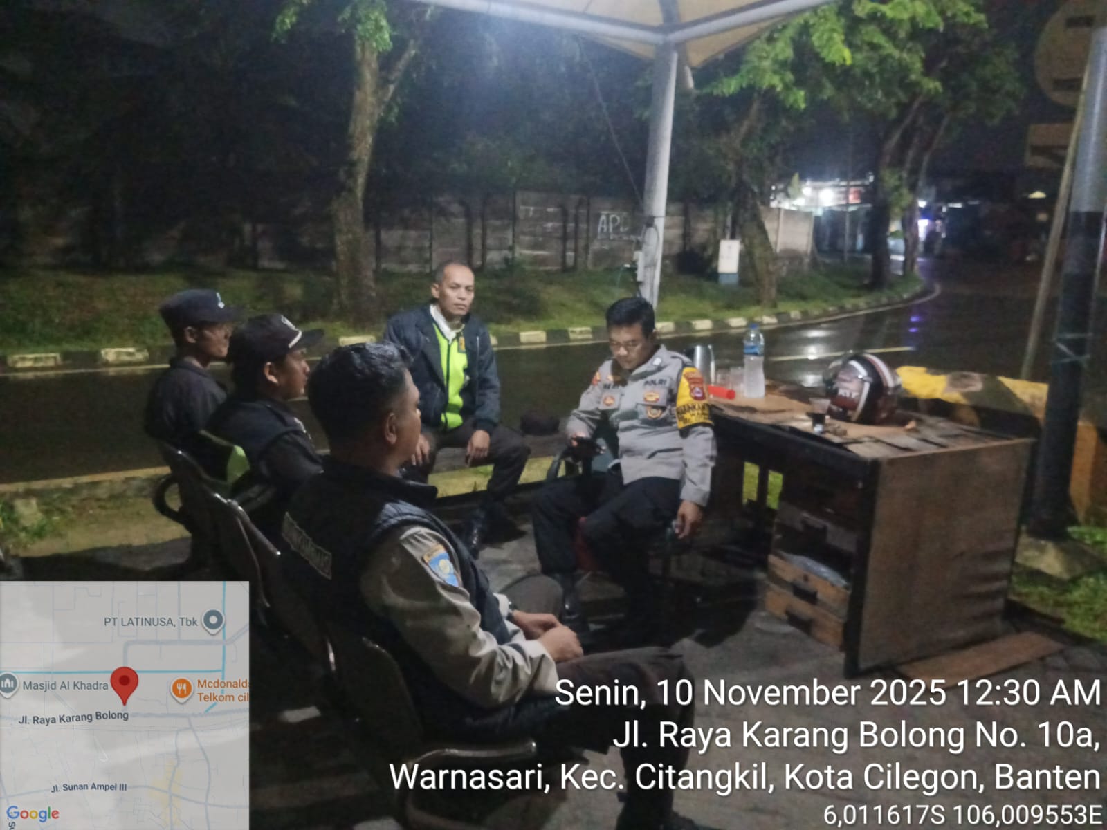 Cilegon - Upaya mengantisipasi aksi kejahatan pada daerah binaan dan memberikan rasa aman dan nyaman kepada warga binaan, Bhabinkamtibmas Polsek Ciwandan Polres Cilegon Polda Banten sambangi warga pada malam hari, Swnin (10/11/2025).