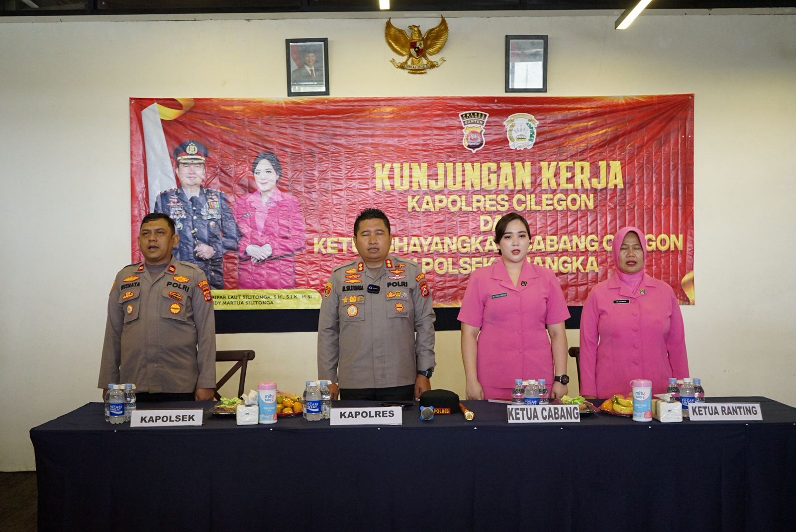 Cilegon – Dalam rangka memperkuat kinerja organisasi serta meningkatkan pelayanan publik di jajaran kepolisian, Kapolres Cilegon AKBP Dr. Martua Raja Taripar Laut Silitonga, S.H., S.I.K., M.Si., bersama Ketua Bhayangkari Cabang Cilegon Ny. Cindy Martua Silitonga, melaksanakan kunjungan kerja ke Polsek Cinangka pada Selasa (11/11/2025), bertempat di Kadena Glamping Dive Resort, Cinangka.