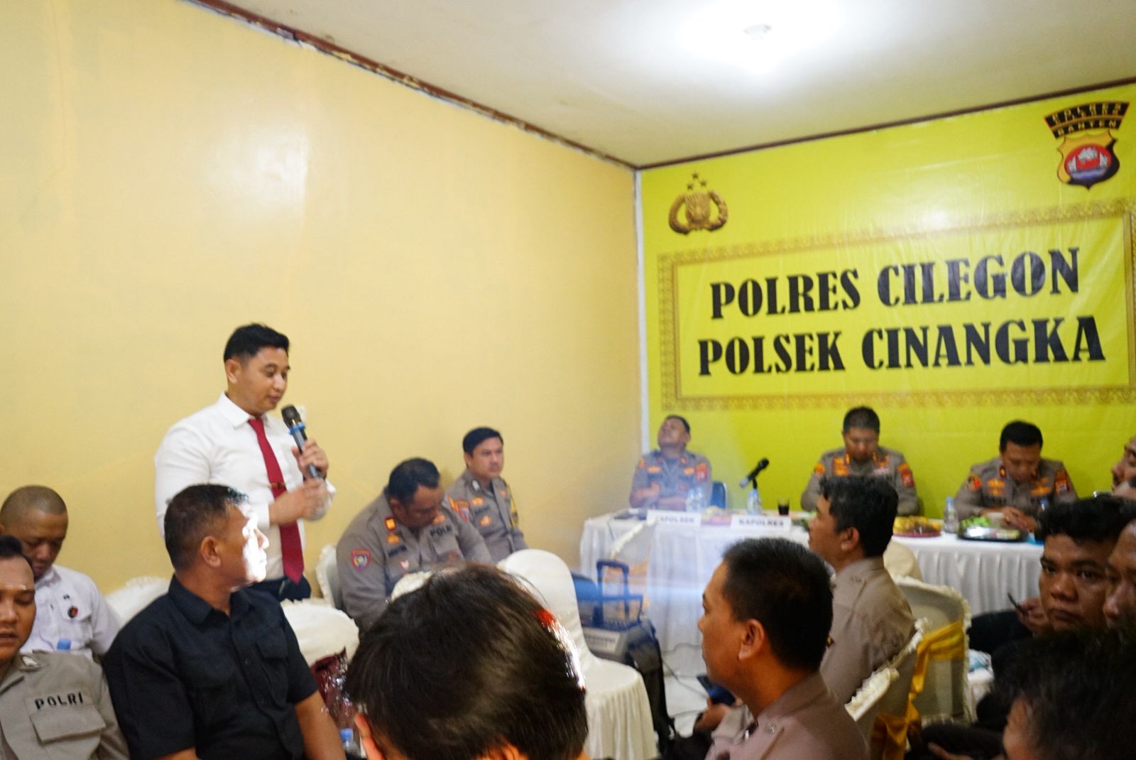 Kegiatan dimulai sekitar pukul 10.40 WIB dengan penyambutan rombongan, dilanjutkan pembukaan, menyanyikan lagu Indonesia Raya, dan pembacaan doa. Dalam kesempatan tersebut, Kapolsek Cinangka IPTU Rusnata menyampaikan ucapan selamat datang kepada Kapolres dan Ketua Bhayangkari Cabang Cilegon beserta jajaran, serta menyampaikan rasa hormat dan terima kasih atas perhatian pimpinan terhadap personel di tingkat Polsek.