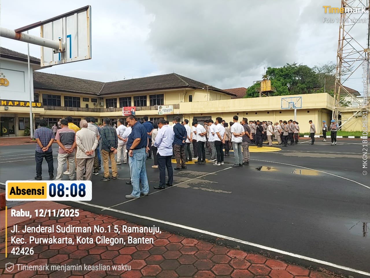 Cilegon, Polres Cilegon ,Polda Banten,  Personil Polres Cilegon Melaksanaan Apel pagi, merupakan kegiatan rutin setiap harinya terkait situasi di wilayah hukum Polres Cilegon Rabu (12/11/2025).