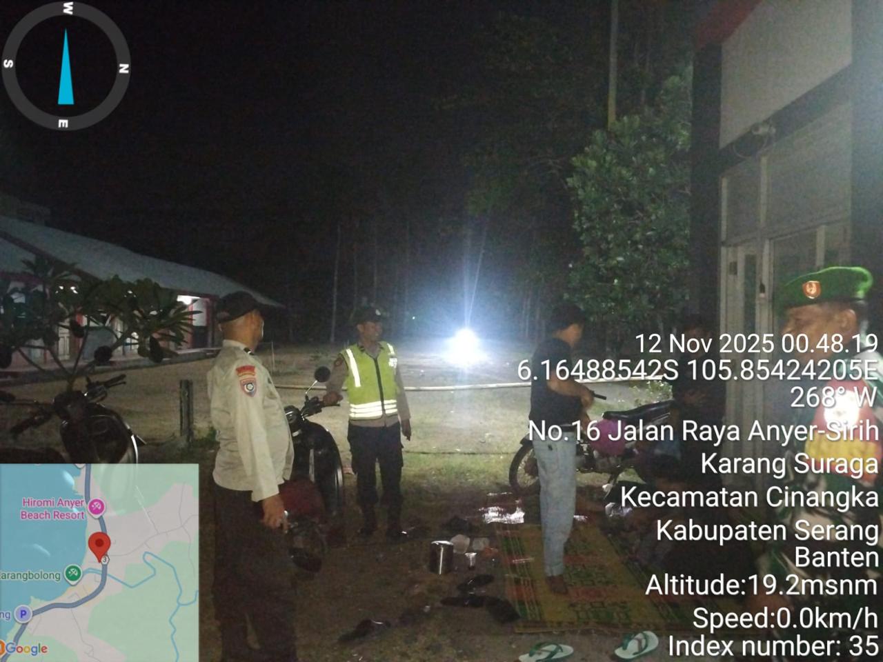 *Cilegon* – Dalam Rangka Pencegahan Kejahatan Jalanan dan Memelihara situasi keamanan dan menjaga serta memberikan rasa aman dan nyaman di masyarakat,Salah satu upaya untuk mewujudkan hal tersebut sebagaimana yang dilakukan oleh Personil Polsek Cinangka Polres Cilegon Polda Banten melaksanakan giat patroli blue light malam hari hingga menjelang pagi, Rabu (12/11/2025).