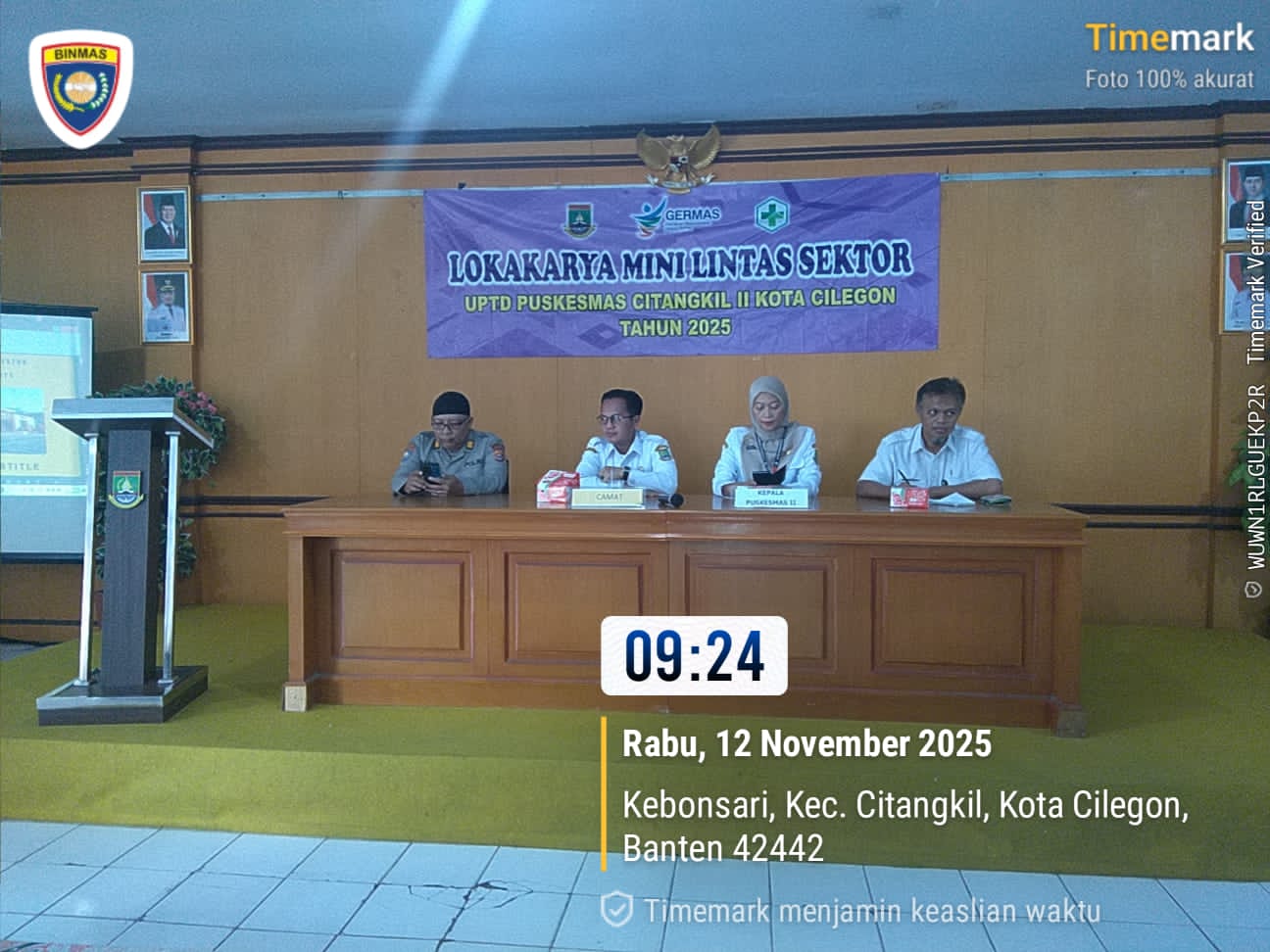 Cilegon - Wakapolsek Ciwandan Polres Cilegon Polda Banten AKP UUP M. Ma'ruf menghadiri kegiatan Lokakarya Mini Lintas Sektor Kesehatan UPTD Puskesmas Citangkil I Tahun 2025 Di Aula Kantor Kecamatan Citangkil, Kamis (12/11/2025).