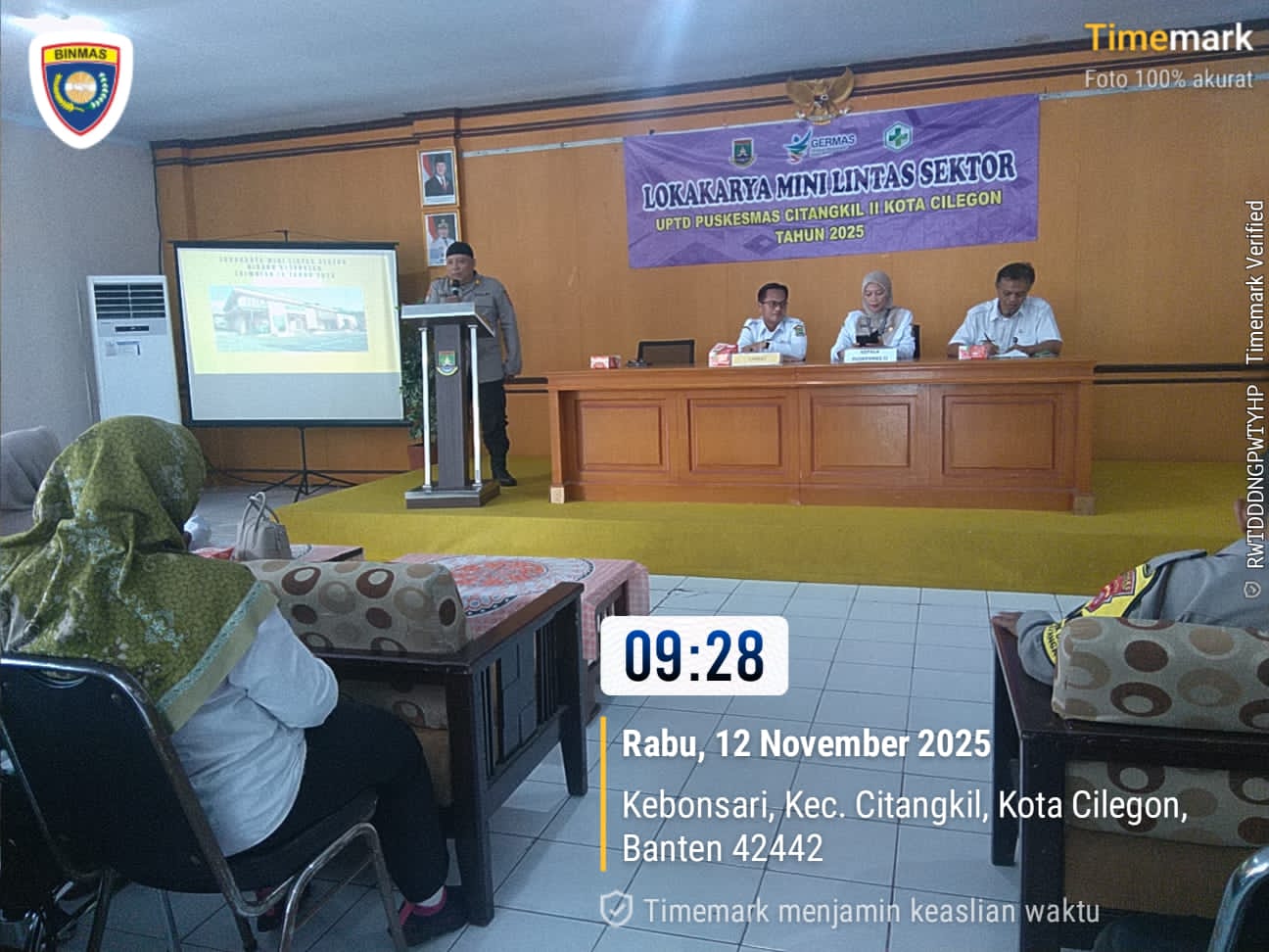 Cilegon - Wakapolsek Ciwandan Polres Cilegon Polda Banten AKP UUP M. Ma'ruf menghadiri kegiatan Lokakarya Mini Lintas Sektor Kesehatan UPTD Puskesmas Citangkil I Tahun 2025 Di Aula Kantor Kecamatan Citangkil, Kamis (12/11/2025).