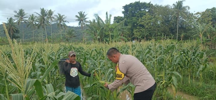 BHABINKAMTIBMAS LAKUKAN PANEN JAGUNG MANIS BERSAMA PETANI DI WILAYAH PABEAN