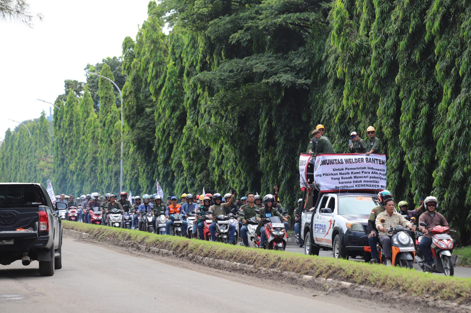 Aksi damai yang diikuti sekitar 200 peserta ini berlangsung di gerbang utama proyek PT. CAA. Massa aksi membawa spanduk, bendera, mobil komando, dan pengeras suara untuk menyampaikan aspirasi terkait pemberdayaan tenaga kerja lokal, khususnya welder asal Cilegon, serta keterbukaan informasi dalam proses rekrutmen di area proyek tersebut.