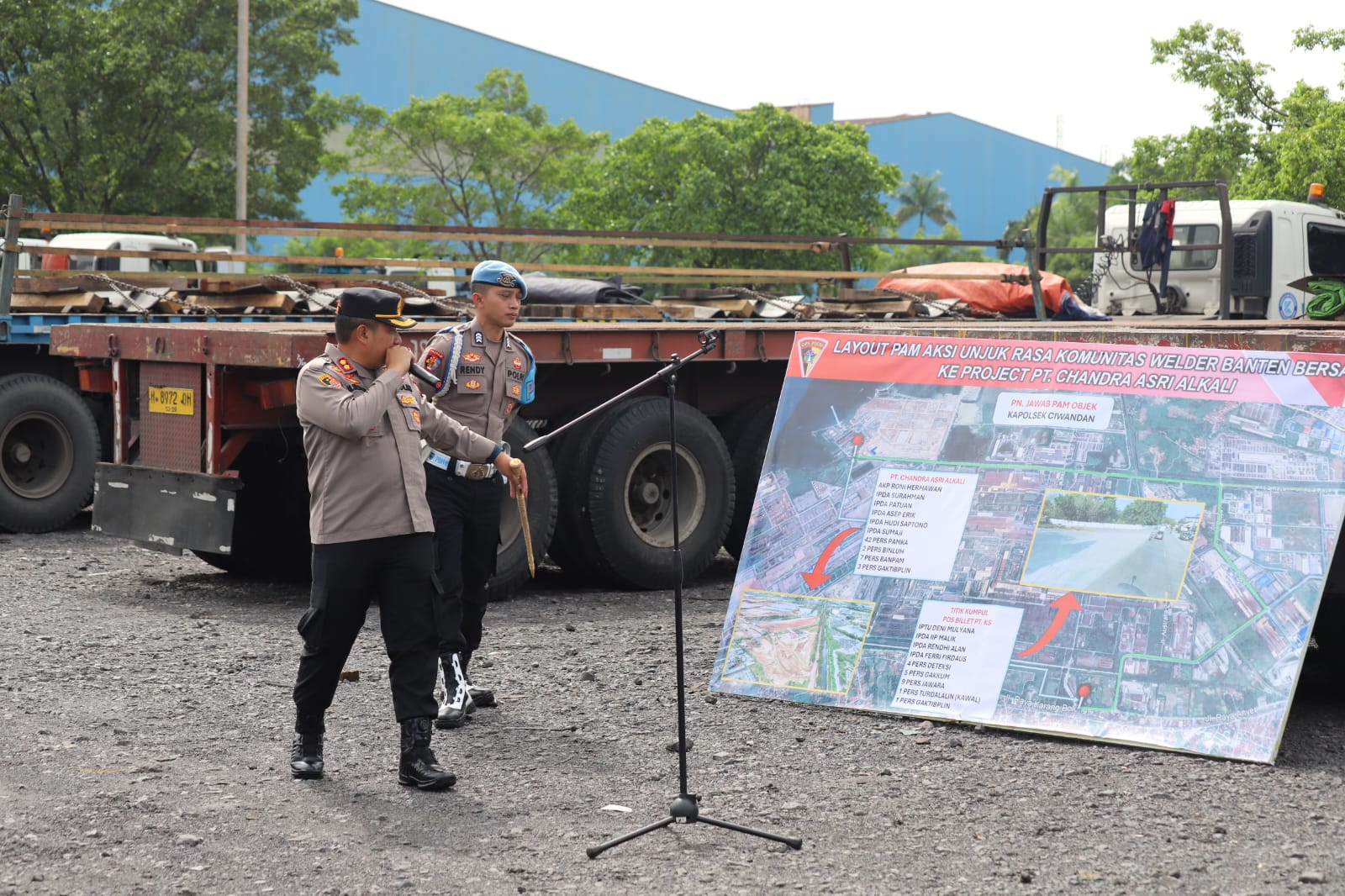 Cilegon – Polres Cilegon Polda Banten melaksanakan pengamanan kegiatan aksi unjuk rasa damai yang digelar oleh Komunitas Welder Banten Bersatu (KWBB) di area proyek PT. Chandra Asri Alkali (CAA), Kamis (13/11/2025).