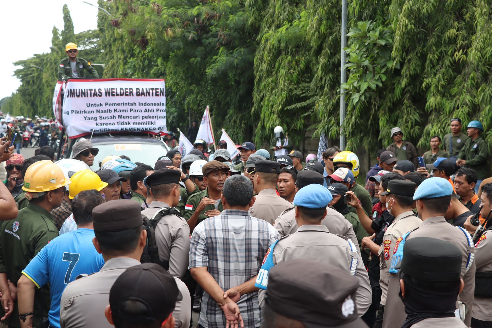 Aksi damai yang diikuti sekitar 200 peserta ini berlangsung di gerbang utama proyek PT. CAA. Massa aksi membawa spanduk, bendera, mobil komando, dan pengeras suara untuk menyampaikan aspirasi terkait pemberdayaan tenaga kerja lokal, khususnya welder asal Cilegon, serta keterbukaan informasi dalam proses rekrutmen di area proyek tersebut.