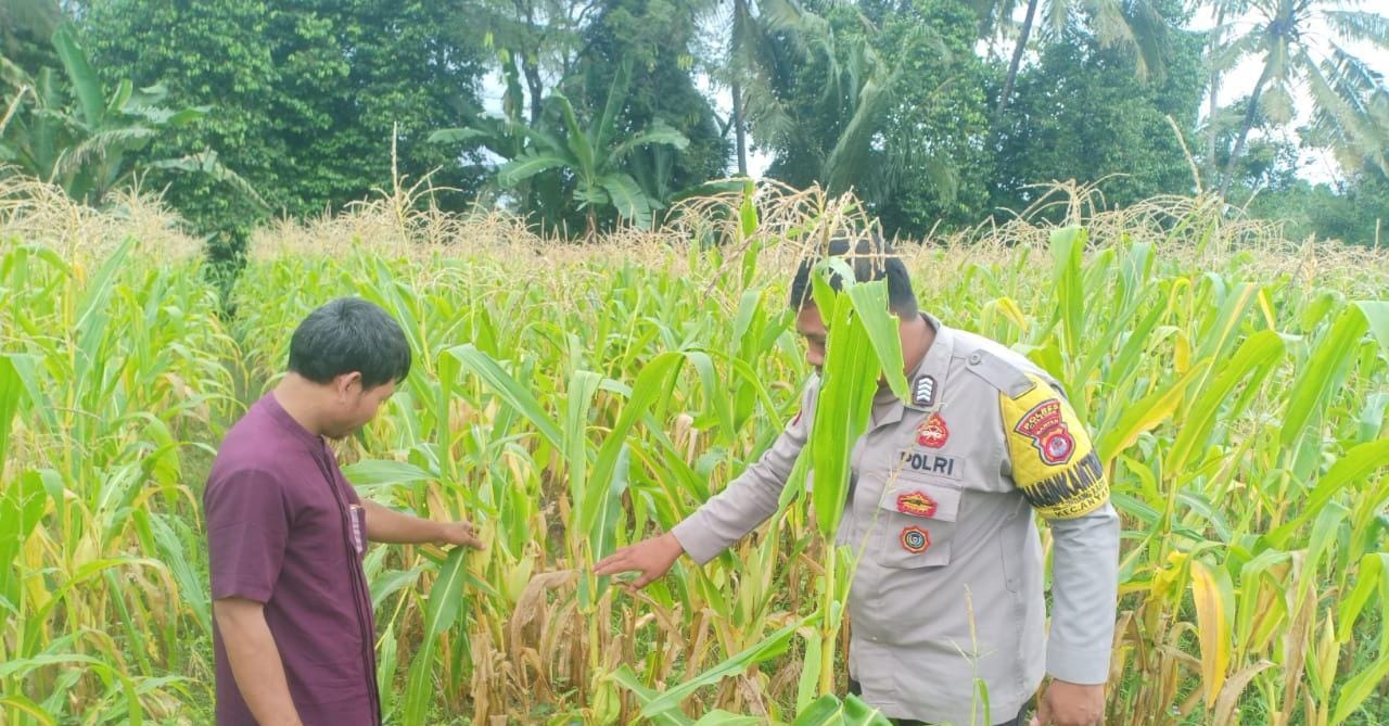 Bhabinkamtibmas Polsek Anyar Bersama Poktan lakukan Cek Pertumbuhan Tanaman Jagung