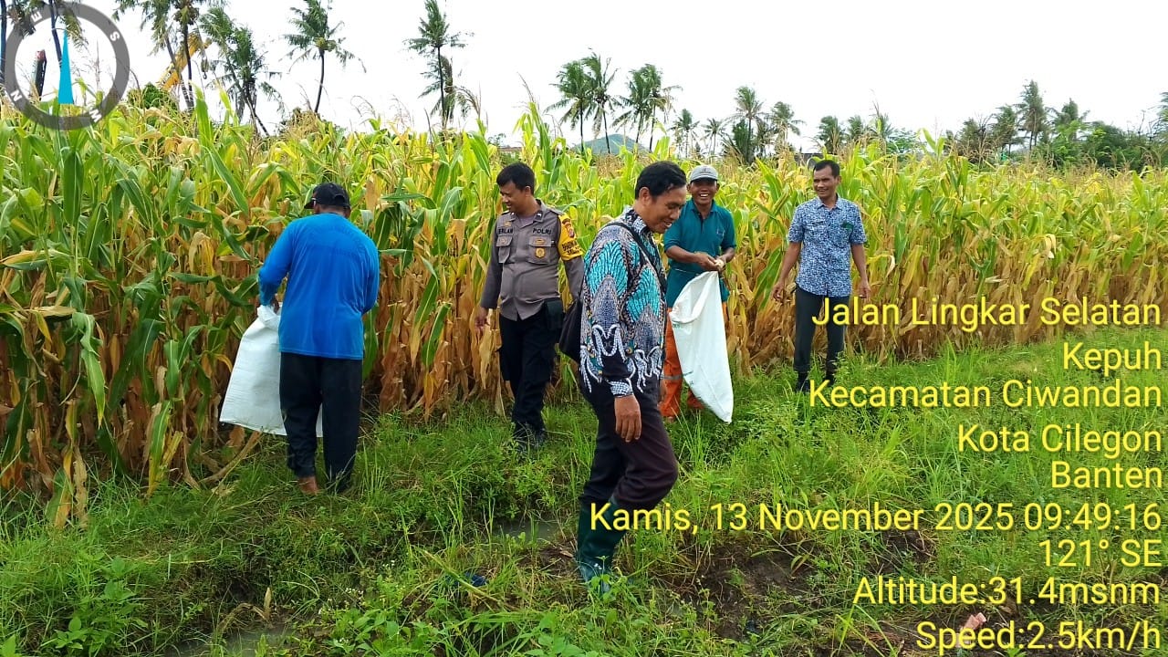 Cilegon - Polsek Ciwandan Polres Cilegon Polda Banten mendukung kegiatan panen jagung Hibrida hasil penanaman Poktan Blumbang Tani di Kelurahan Tegal Ratu, Kecamatan Ciwandan, Kota Cilegon, Kamis (13/11/2025)