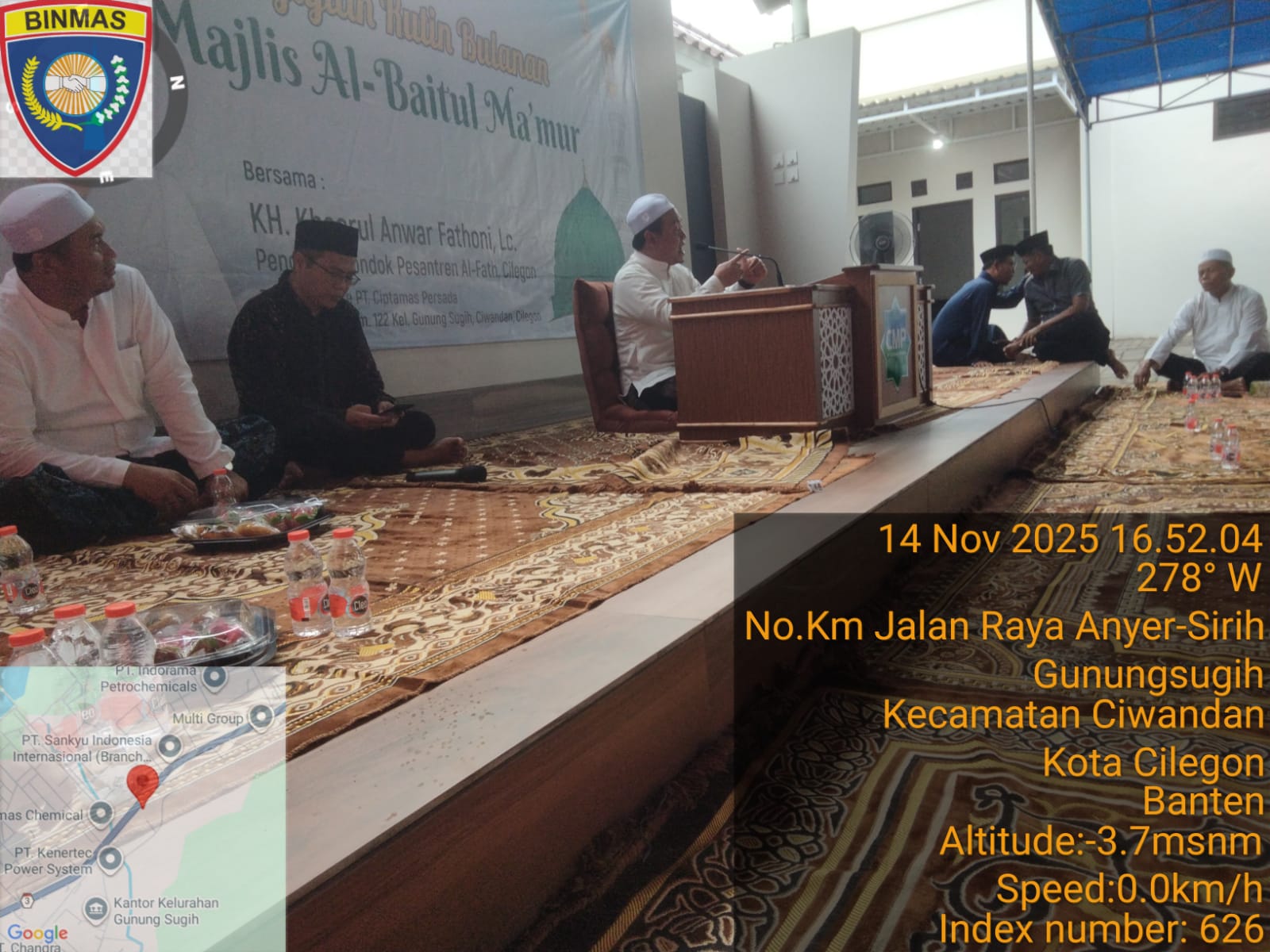 Cilegon - Bhabinkamtibmas Polsek Ciwandan Polres Cilegon Polda Banten menghadiri kegiatan Doa Bersama dan Dilanjutkan Pengajian Rutin dilingkungan Kelurahan Gunung Sugih Kecamatan Ciwandan Kota Cilegon, Jum’at (14/11/2025).