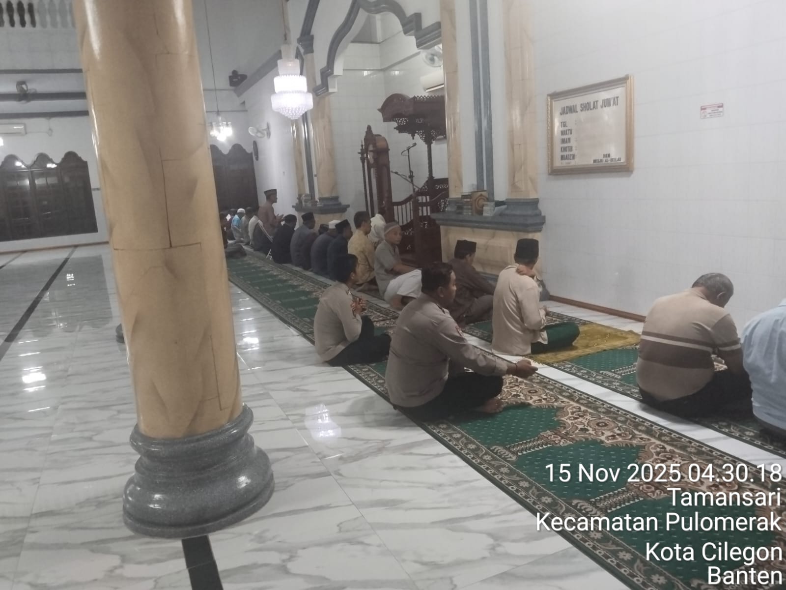 Cilegon - Personil Kskp Merak Polres Cilegon Polda Banten menggelar kegiatan Pembinaan Rohani dengan shalat subuh keliling di Masjid Yang ada Di Daerah hukum Polsek Kp Merak Polres Cilegon Polda Banten, Sabtu (15/11/2025).