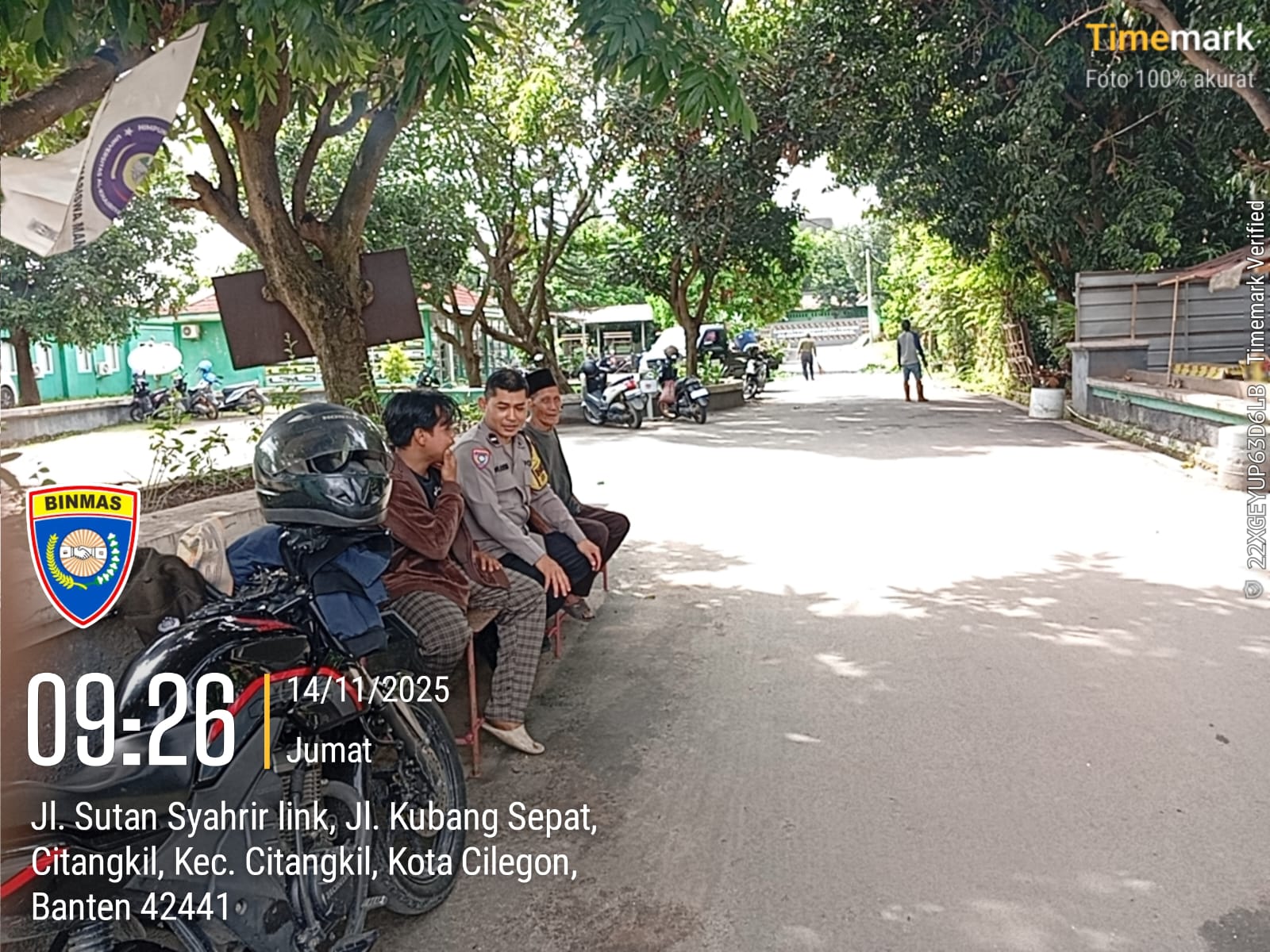 Cilegon – Bhabinkamtibmas Polsek Ciwandan Selalu Hadir Di Setiap Kegiatan warga binaanya merupakan salah satu tugas rutin Bhabinkamtibmas, yakni dengan melaksanakan kunjungan kepada masyarakat binaannya untuk menjalin silaturahmi yang lebih erat dan menyampaikan pesan-pesan kamtibmas serta mencari informasi yang berkembang di masyarakat agar tercipta situasi kamtibmas yang aman dan kondusif, Sabtu (15/11/2025).