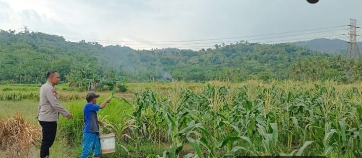 -POLRES CILEGON-Polda Banten. Aipda Anton Sudrajat, Bhabinkamtibmas Kelurahan Pabean, Kecamatan Purwakarta, Kota Cilegon, bersama kelompok tani setempat melakukan pengecekan tanaman jagung di lingkungan Blok Tuk, Karang Tengah, pada hari ini. Kegiatan ini merupakan wujud dukungan terhadap program ketahanan pangan nasional.