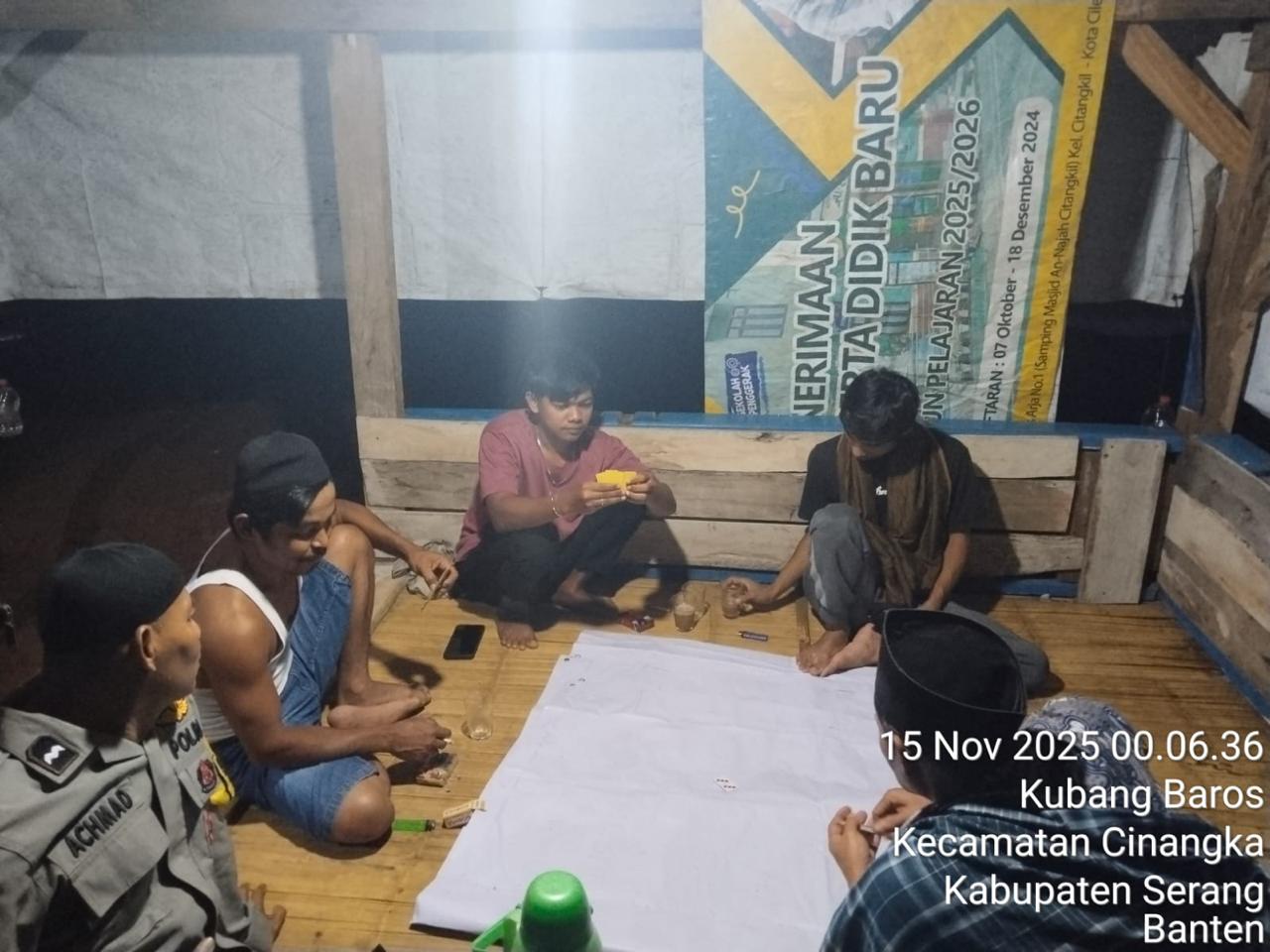 *Polres Cilegon* || Personel Bhabinkamtibmas Polsek Cinangka melaksanakan Program Komandan Wish Kapolda Banten RONDA SATKAMLING menyampaikan komunikasi dengan Petugas Siskamling agar berperan aktif dalam menciptakan Harkamtibmas yang aman dan Kondusif, Minggu (16/11/2025).