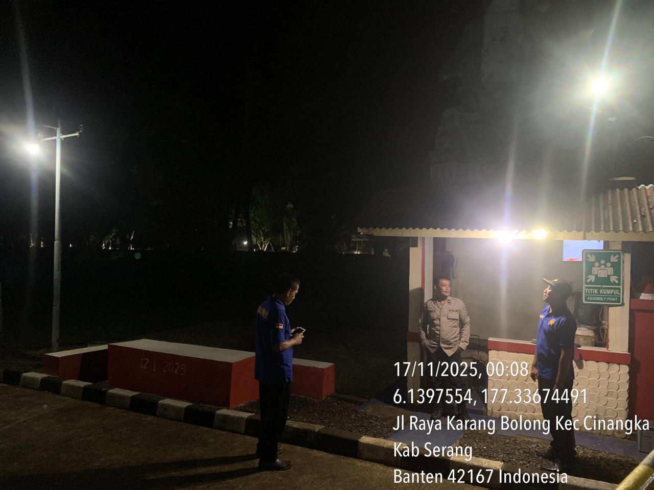 *Cilegon* – Dalam Rangka Pencegahan Kejahatan Jalanan dan Memelihara situasi keamanan dan menjaga serta memberikan rasa aman dan nyaman di masyarakat,Salah satu upaya untuk mewujudkan hal tersebut sebagaimana yang dilakukan oleh Personil Polsek Cinangka Polres Cilegon Polda Banten melaksanakan giat patroli blue light malam hari hingga menjelang pagi, Senin (17/11/2025).
