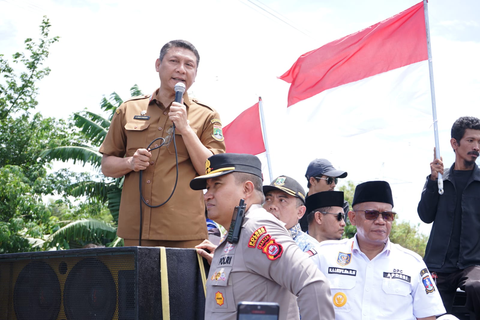 Kapolres Cilegon bersama Sekda Provinsi Banten, H. Deden Apriandhi, hadir langsung menemui massa aksi pada pukul 11.15 WIB. Kehadiran pejabat pemerintah dan kepolisian tersebut menjadi momentum penting dalam menjaga situasi tetap kondusif melalui dialog terbuka. Dalam penyampaiannya, Sekda menegaskan bahwa sejumlah langkah konkret akan segera dijalankan, seperti pendirian pos pengawasan tambang, pemeliharaan jalan, rencana pelebaran jalan nasional, hingga peningkatan penerangan.