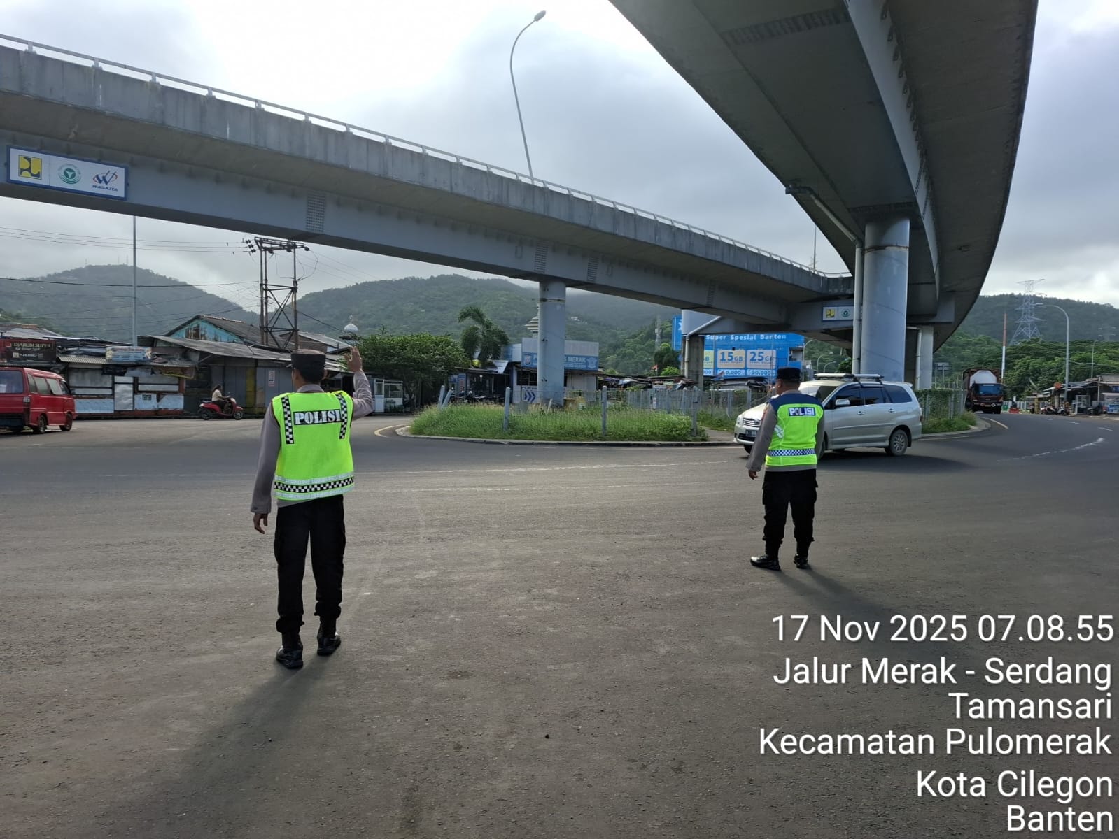 Kapolres Cilegon Polda Banten AKBP Martua Raja Taripar Laut Silitonga melalui Kapolsek Kskp Merak AKP Gusti Almasri P menyampaikan bahwa kegiatan pengaturan antrian ini adalah dalam rangka memberikan pelayanan kepada masyrakat yang akan menyebrang ke Bakauheni atau Sumatra melalui jalur laut dengan menaiki kapal Ferry.