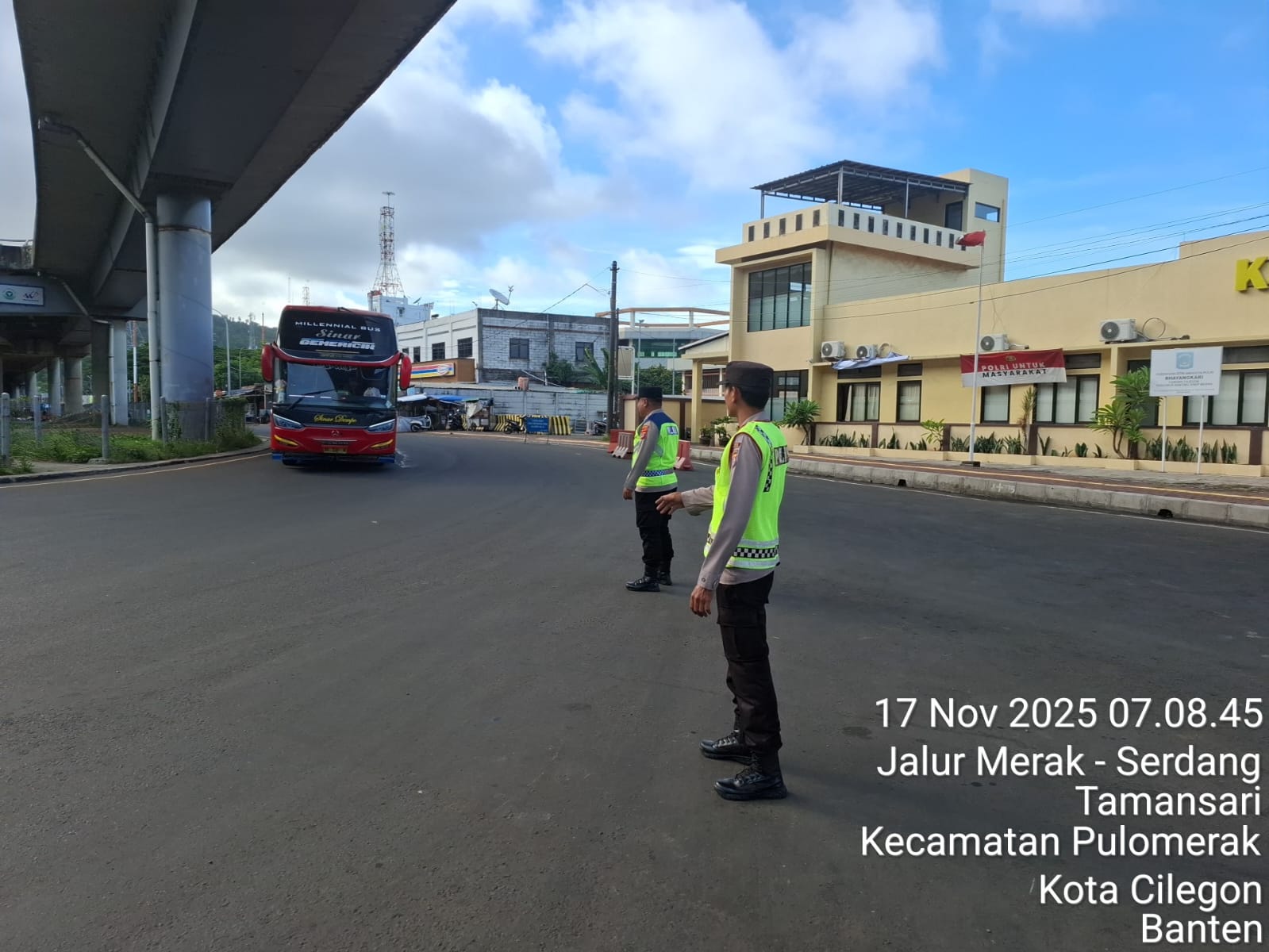Cilegon - Dalam rangka peningkatan pelayanan prima kepada masyarakat, Kskp Merak Polres Cilegon Polda Banten melaksanakan pengaturan antrian R4 yang akan masuk ke Kapal Ferry di Pelabuhan Merak, Senin (17/11/2025).