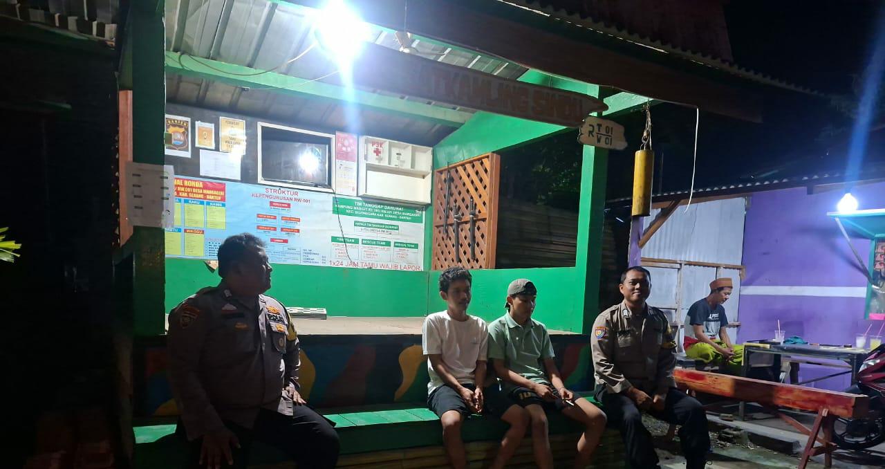 Cilegon ~ Dalam upaya menjaga situasi kamtibmas tetap kondusif,Bhabinkamtibmas Polsek Bojonegara Polres Cilegon Polda Banten,  Bhabinkamtibmas Desa Margagiri melaksanakan kegiatan kontrol dan pemantauan ronda malam,di sejumlah pos ronda warga yang berada di wilayah binaannya, Selasa (18/11/2025).