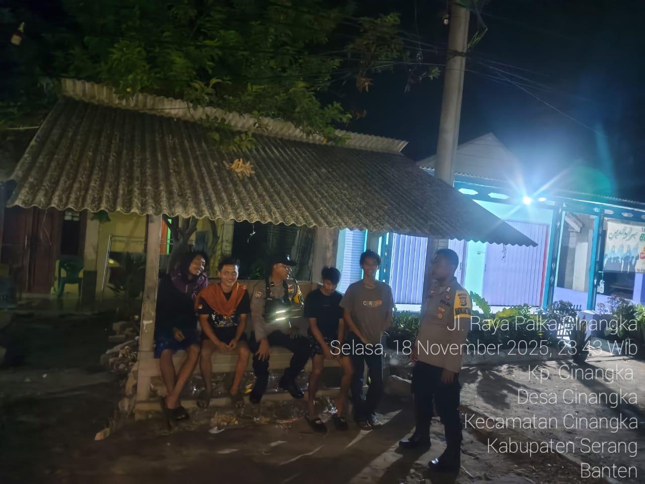 *Polres Cilegon* || Personel Bhabinkamtibmas Polsek Cinangka melaksanakan Program Komandan Wish Kapolda Banten RONDA SATKAMLING menyampaikan komunikasi dengan Petugas Siskamling agar berperan aktif dalam menciptakan Harkamtibmas yang aman dan Kondusif, Rabu (19/11/2025).