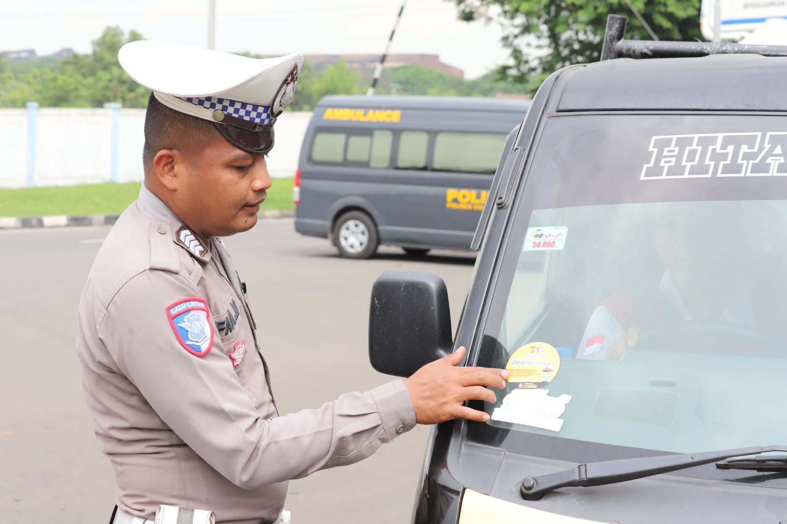 Petugas kemudian membagikan leaflet dan menempelkan stiker imbauan keselamatan kepada pengguna jalan yang melintas. Edukasi langsung juga diberikan, terutama kepada para pengendara roda dua yang belum memahami pentingnya penggunaan helm berstandar SNI dan mematuhi peraturan dasar berkendara.