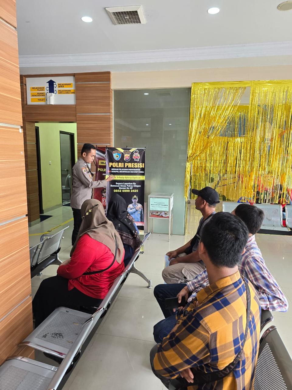 Personel (Seksi Pengawasan ) Polres Cilegon Melaksanakan Sosialisasi tentang pengaduan masyarakat di Pusat pelayanan Terpadu (Pusyandu) Polres Cilegon