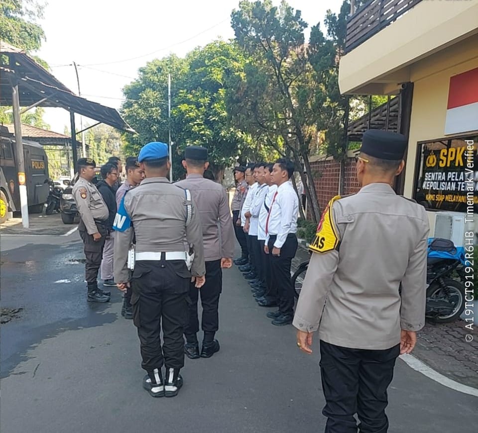 Cilegon, personel Satreskrim Polres Cilegon Polda Banten melaksanakan piket di penjagaan pintu masuk Polres Cilegon Polda Banten untuk memastikan mako Polres Cilegon dalam keadaan aman dan nyaman dalam melayani Masyarakat. Jumat (21/11/2025).