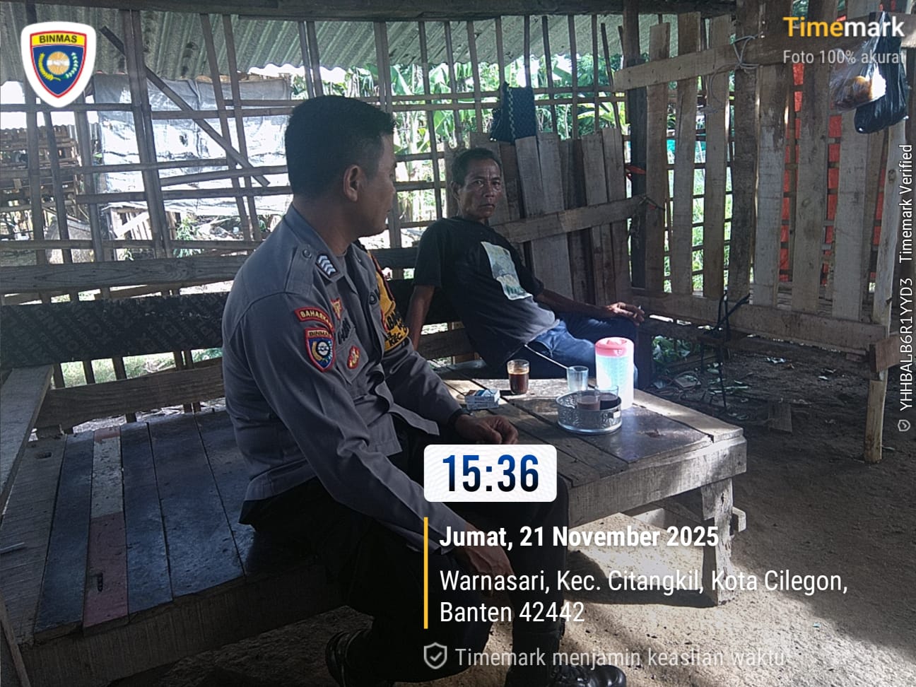 Cilegon - Bhabinkamtibmas Polsek Ciwandan Polres Cilegon Polda Banten Melaksanakan Sambang Dialogis Sambil Ngopi Bareng Warga sekaligus Bahas Ketertiban Dan Keamanan Lingkungan Binaan, Jum'at (21/11/2025).