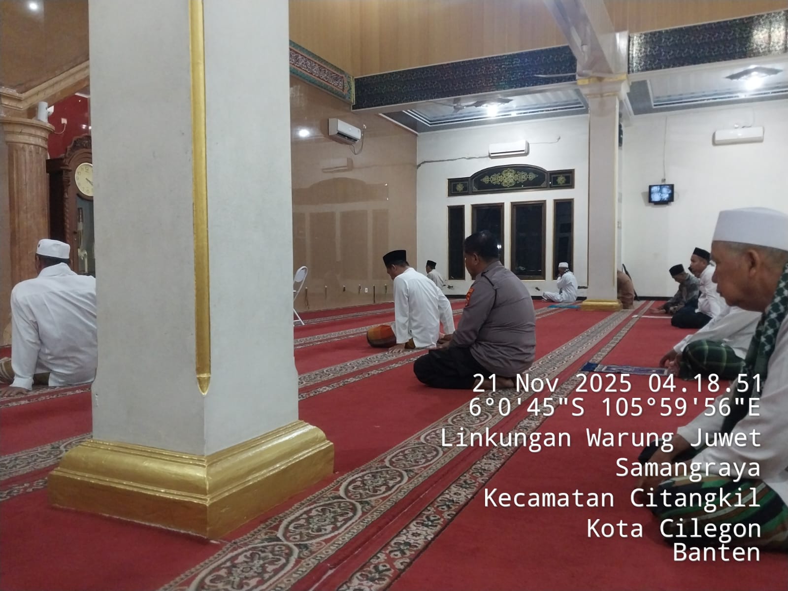 Cilegon - Dalam Rangka Implementasi Program Subuh Keliling Kapolda Banten Dan Kapolres Cilegon Polda Banten Bhabinkamtibmas Polsek Ciwandan Polres Cilegon Polda Banten melakukan Sholat Subuh Berjama’ah bersama warga masyarakat, Jum'at (21/11/2025).