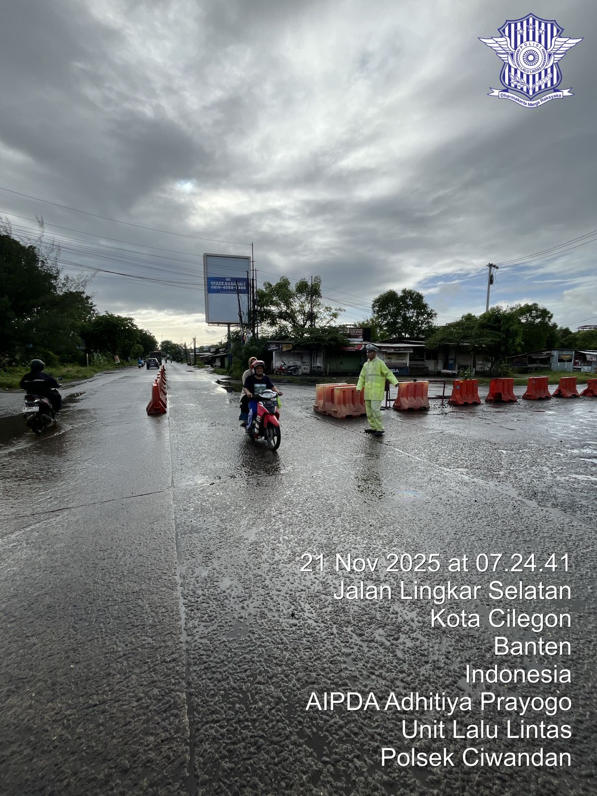 Cilegon - Pelayanan Prima Kepolisian Kepada Warga Masyarakat dan Guna menciptakan situasi lalu lintas yang aman, tertib dan lancar, Personel Unit Lantas Polsek Ciwandan Polres Cilegon Polda Banten secara rutin melaksanakan pengaturan lalu lintas, Jum'at (21/11/2025).