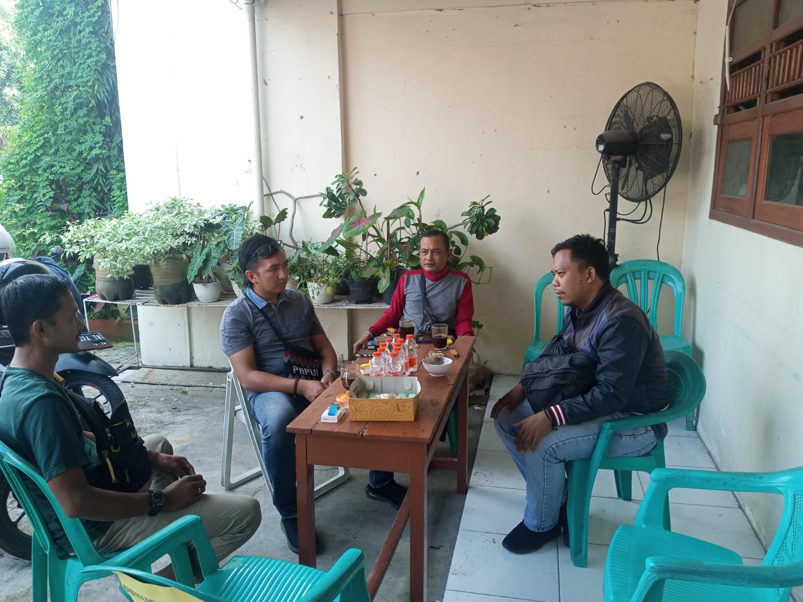 Personil sat intelkam melakukan koordinasi dengan tokoh masyarakat kelurahan kotasari kec. Gerogol kota cilegon.