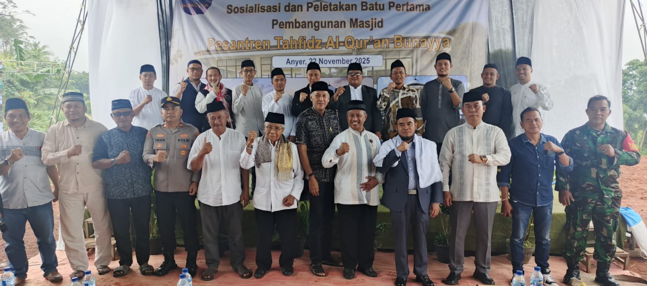 Polsek Anyar Polres Cilegon Polda Banten menghadiri kegiatan sosialisasi serta peletakan batu pertama pembangunan Masjid Pesantren Tahfidz Al-Qur'an Bunayyas yang dilaksanakan di Desa Bunihara Kecamatan Anyar Kabupaten Serang. Sabtu (22/11)