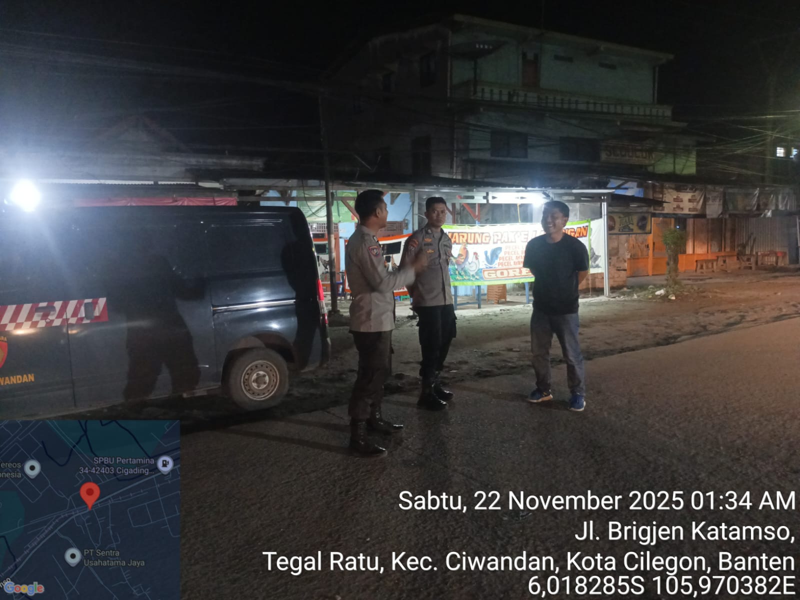 *Cilegon* - Personil Polsek Ciwandan Polres Cilegon Polda Banten Selalu Melaksanaan Kegiatan KRYD (Kegiatan Rutin Yang Ditingkatkan) Patroli Rutin malam hari di daerah hukum Polsek Ciwandan Guna Persempit Ruang Pelaku Tindak Kejahatan, Sabtu (22/11/2025).