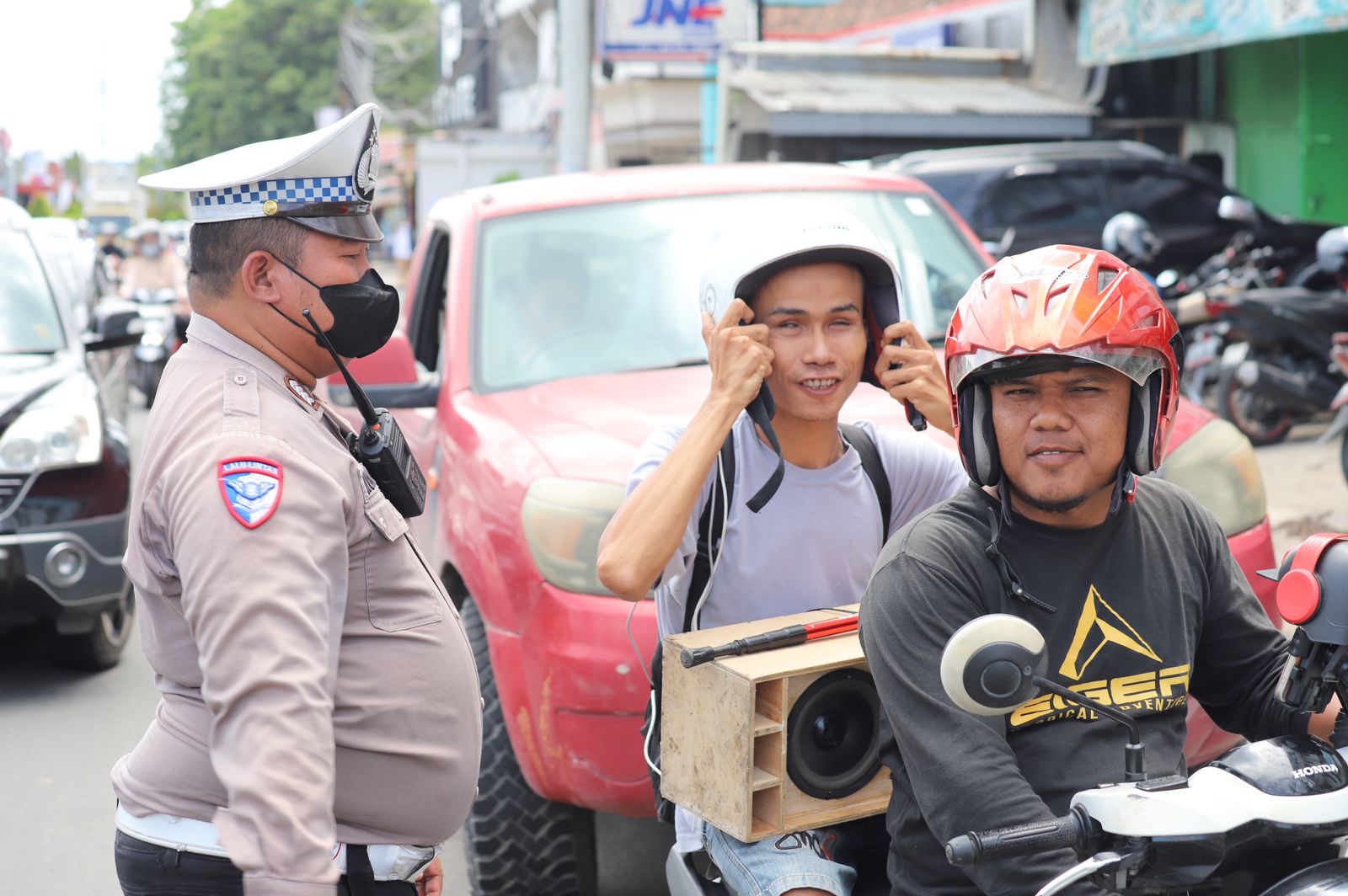 * Pengendara yang tidak menggunakan helm SNI atau safety belt,