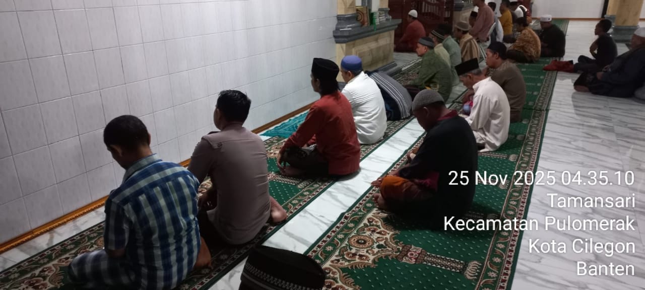 Cilegon – Personil Kskp Merak Polres Cilegon Polda Banten menggelar kegiatan Pembinaan Rohani dengan shalat subuh keliling di Masjid Yang ada Di Daerah hukum Polsek Kp Merak Polres Cilegon Polda Banten, Selasa (25/11/2025).