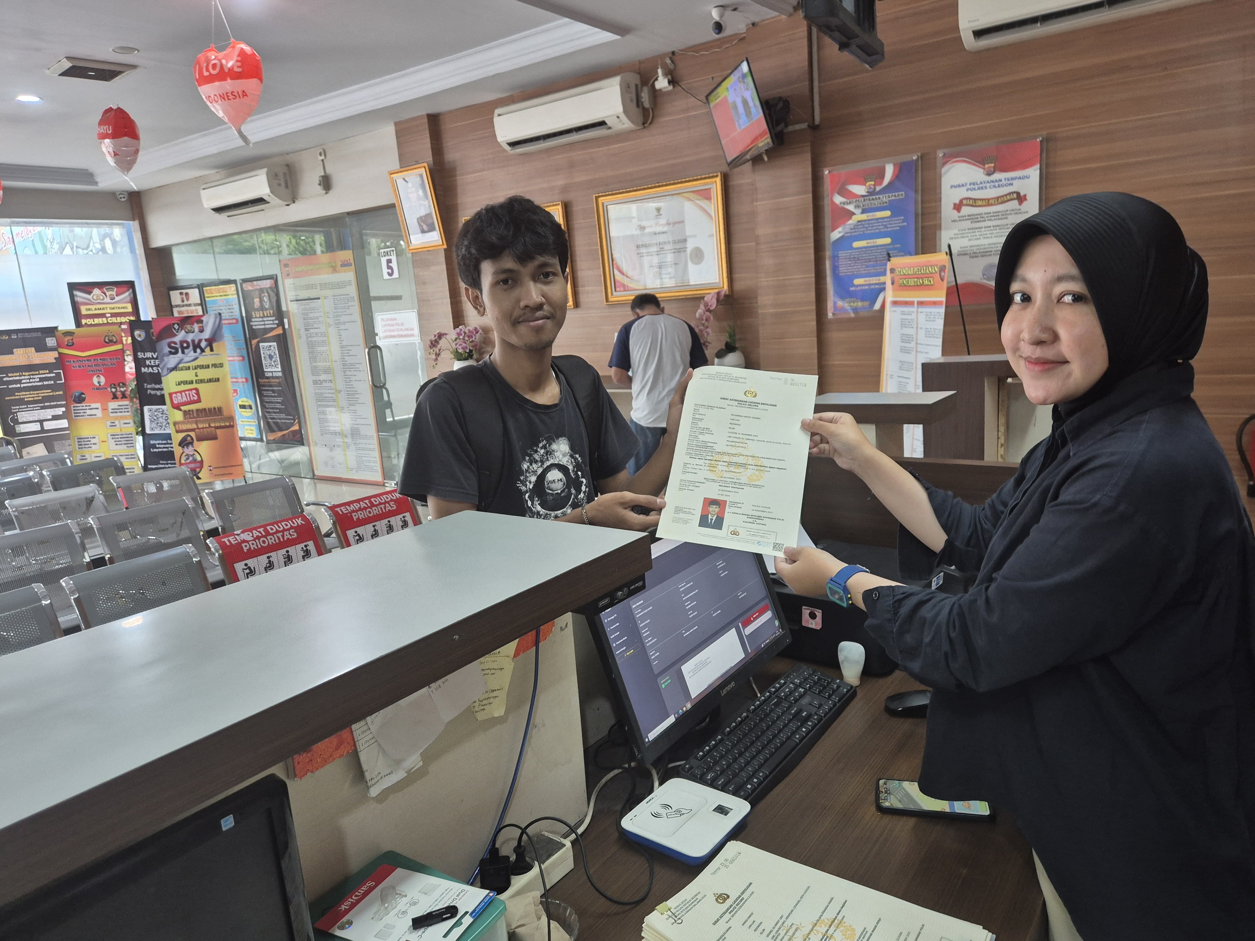 CILEGON - Testimoni penerbitan Surat Keterangan Catatan Kepolisian (SKCK) berbasis online. Sistem itu mulai diberlakukan awal November 2025, seluruh proses pendaftaran SKCK di wilayah hukum Polres Cilegon wajib dilakukan melalui Aplikasi Super App Polri versi terbaru (SKCK Full Online).