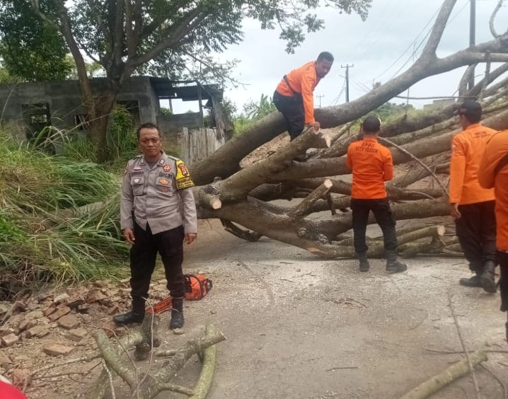 Pohon tumbang tersebut sempat menghambat lalu lintas warga setempat. Bripka Nugraha bersama tim BPBD segera melakukan pemotongan dan pemindahan batang pohon agar jalan dapat kembali dilalui.