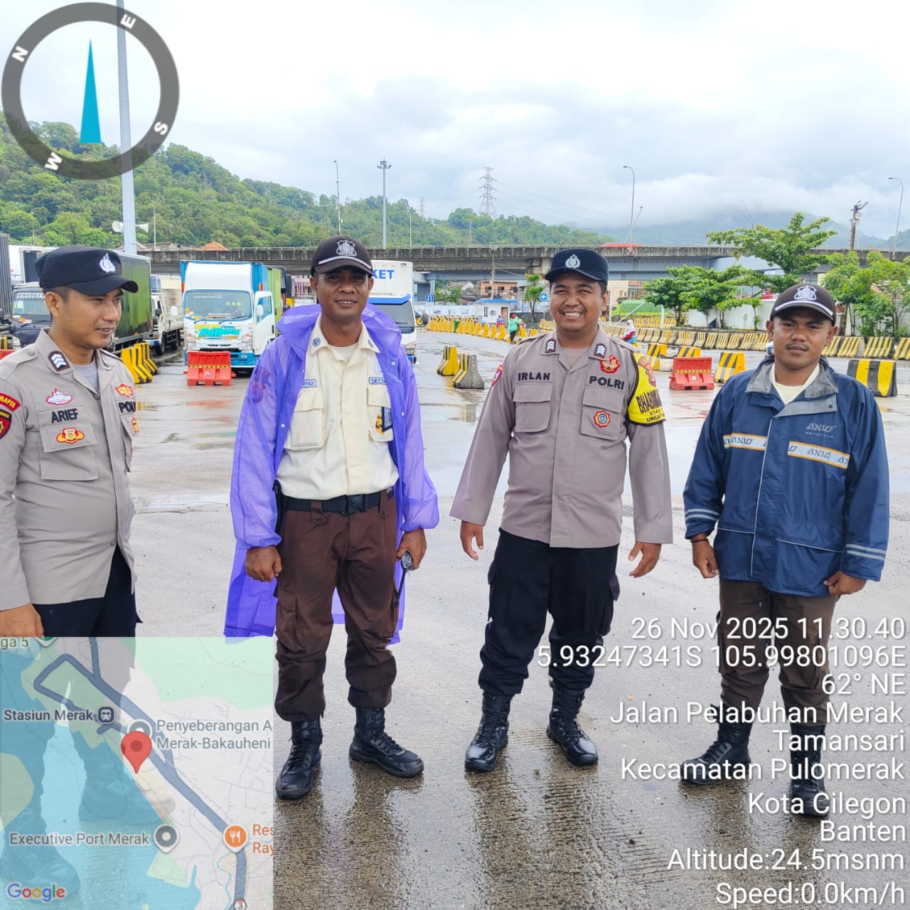 Cilegon - Personel Polsek Kskp Merak Polres Cilegon Polda Banten melaksanakan sambang dan patroli kawasan pelabuhan merak dalam rangka menjaga Harkamtibmas di Kawasan Pelabuhan Merak, Rabu (26/11/2025).
