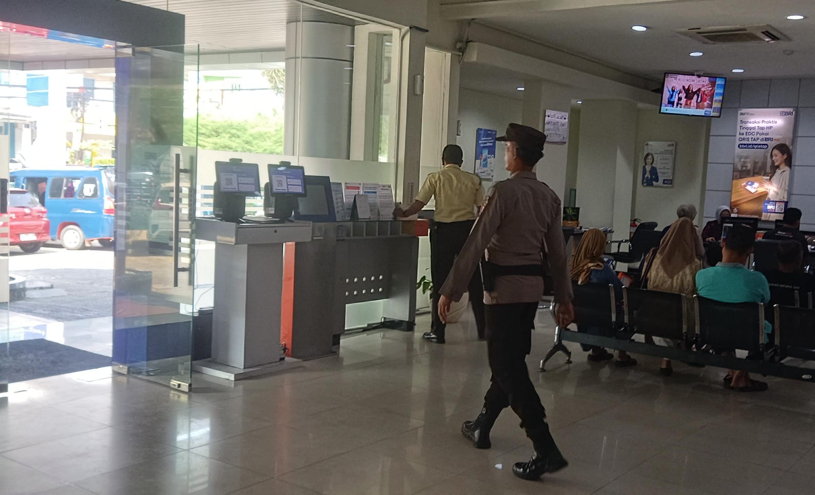 Personil satpamobvit melaksanakan pengamanam bank BRI