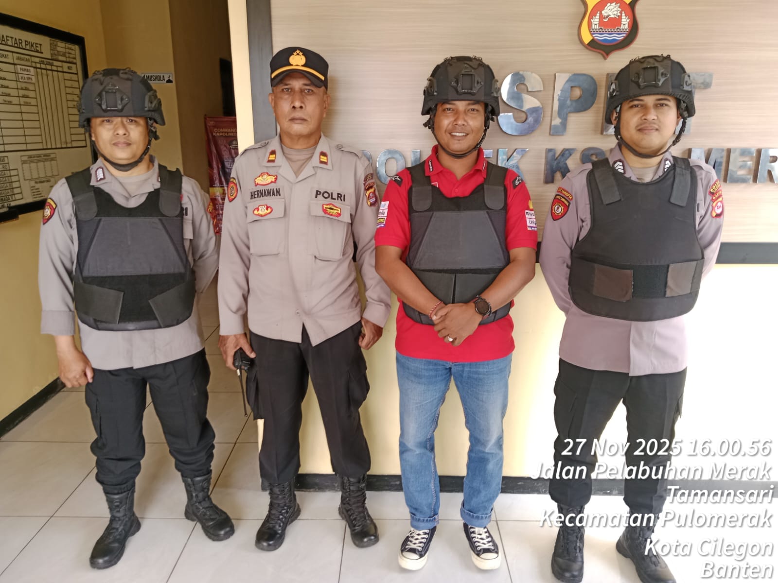 Cilegon - Personel piket jaga Polsek Kskp Merak Polres Cilgon Polda Banten melaksanakan siaga 1 Polsek pelaksanaan Sispam Mako oleh piket siaga dipimpin oleh Kspk Polsek Kskpy Merak Polres Cilegon Polda Banten, Kamis (27/11/2025).