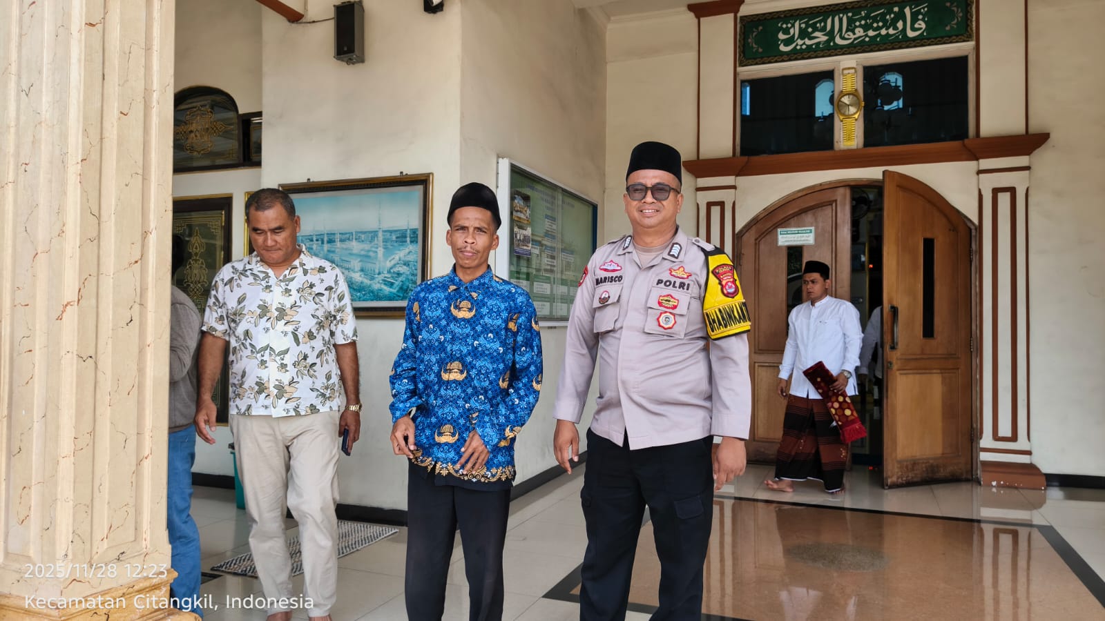 Cilegon - Bhabinkamtibmas Polsek Ciwandan Polres Cilegon Polda Banten Selesai melaksanakan Sholat secara berjama’ah dan Sampaikan Himbauan-himbauan Kamtibmas Kepada Masyarakat Jama'ah Yang ada Dimasjid, Jum'at (28/11/2025).
